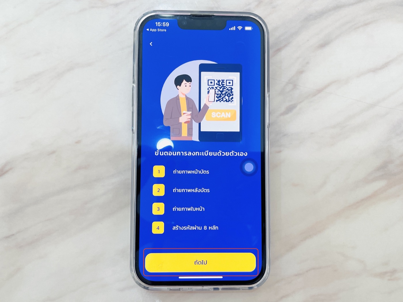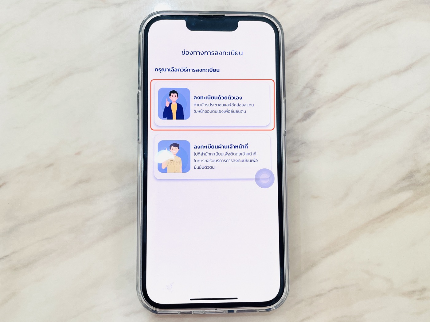 อ่านขั้นตอนการลงทะเบียนด้วยตัวเอง แล้วแตะถัดไป