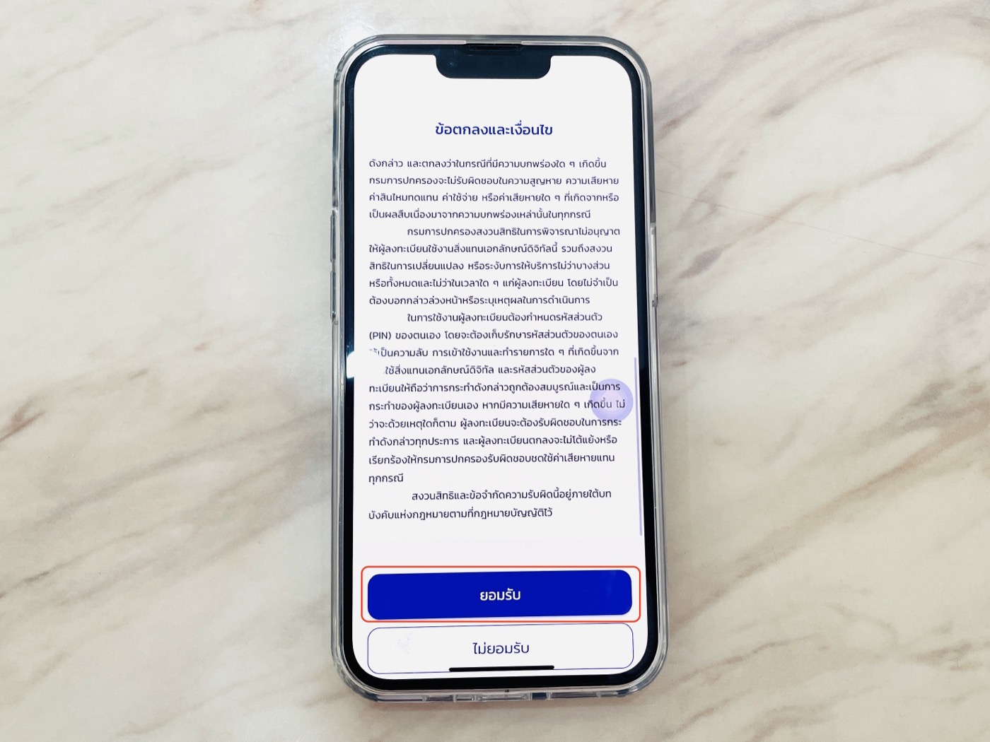 อ่านข้อตกลงและเงื่อนไข เลื่อนลงด้านล่าง แล้วแตะยอมรับ