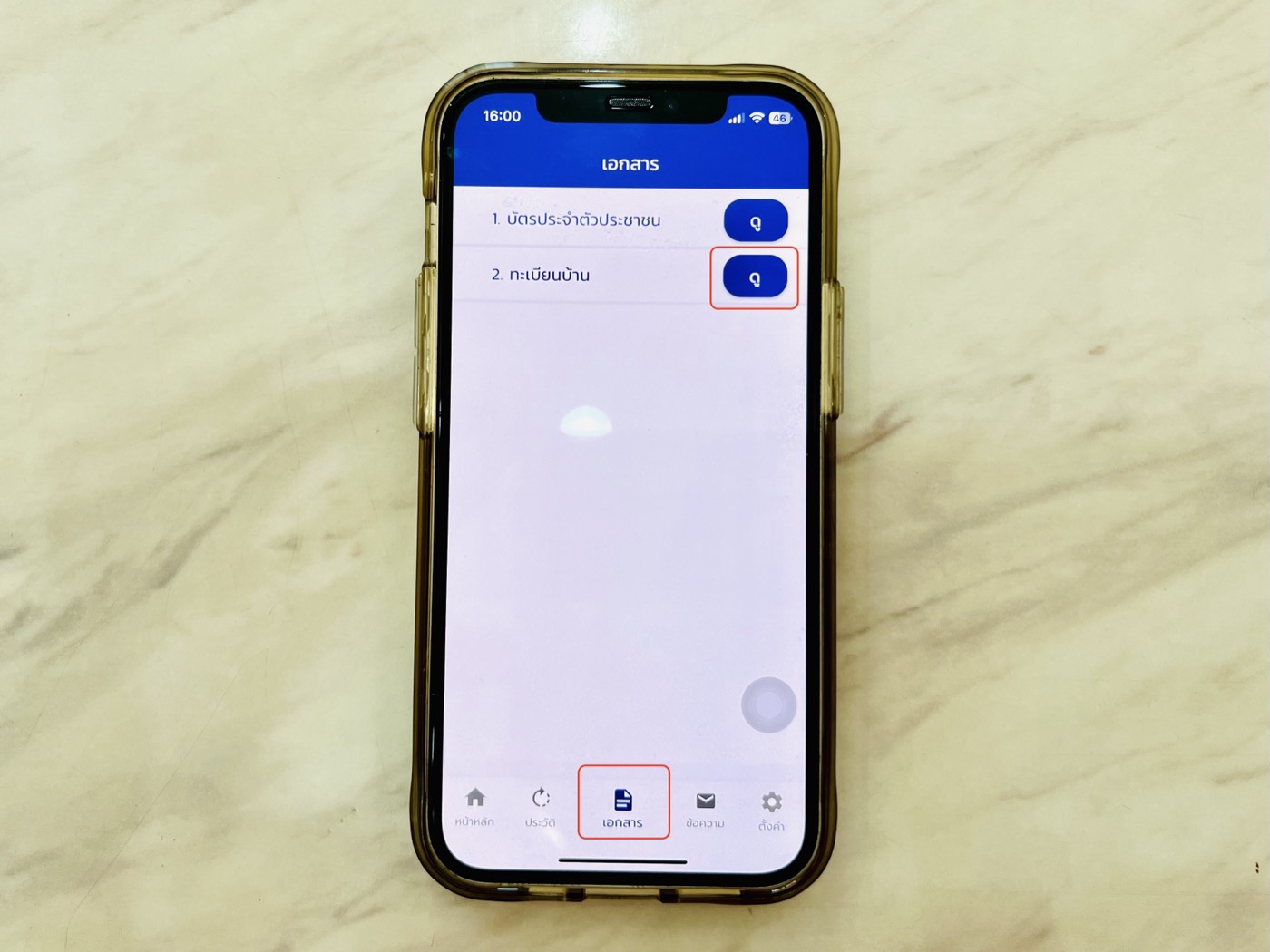 แตะเมนู เอกสาร ด้านล่าง เพื่อเข้าถึงเอกสารส่วนตัวอื่น ๆ ตอนนี้มีให้เราเข้าดูบัตรประจำตัวประชาชนและทะเบียนบ้าน