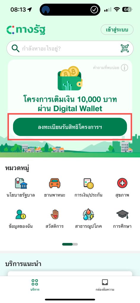 เปิดแอปทางรัฐ > แตะ “ลงทะเบียนรับสิทธิโครงการ”