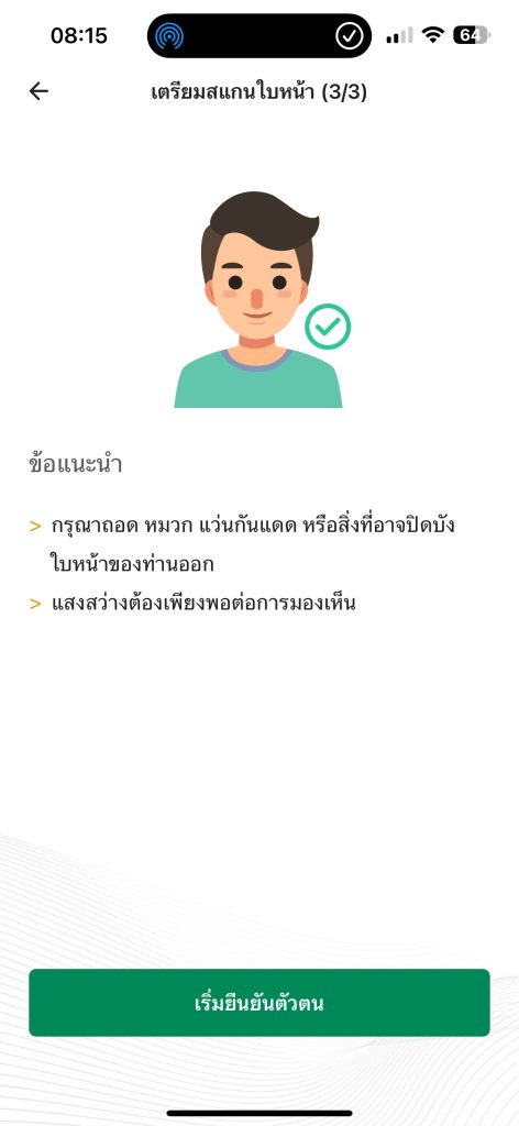 สแกนใบหน้าตามขั้นตอน โดยแตะ “เริ่มยืนยันตัวตน”