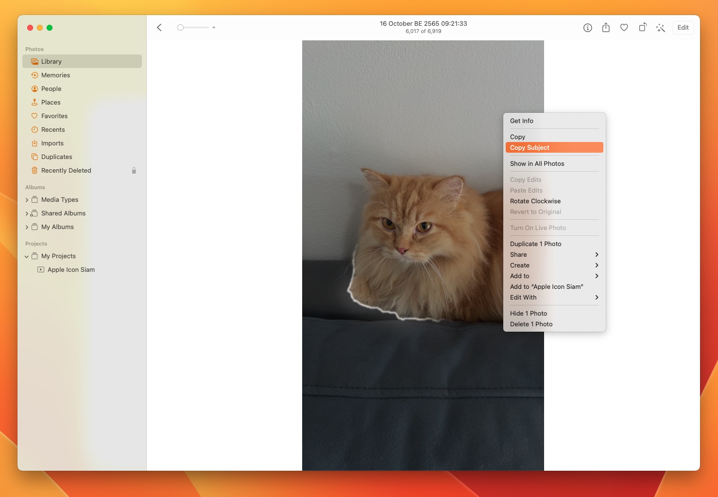 วิธีการก็ง่าย ๆ เช่นกัน เพียงแค่เปิดแอป Photos และเปิดภาพที่ต้องการขึ้นมา > คลิกขวาที่รูปภาพ แล้วเลือก Copy Subject