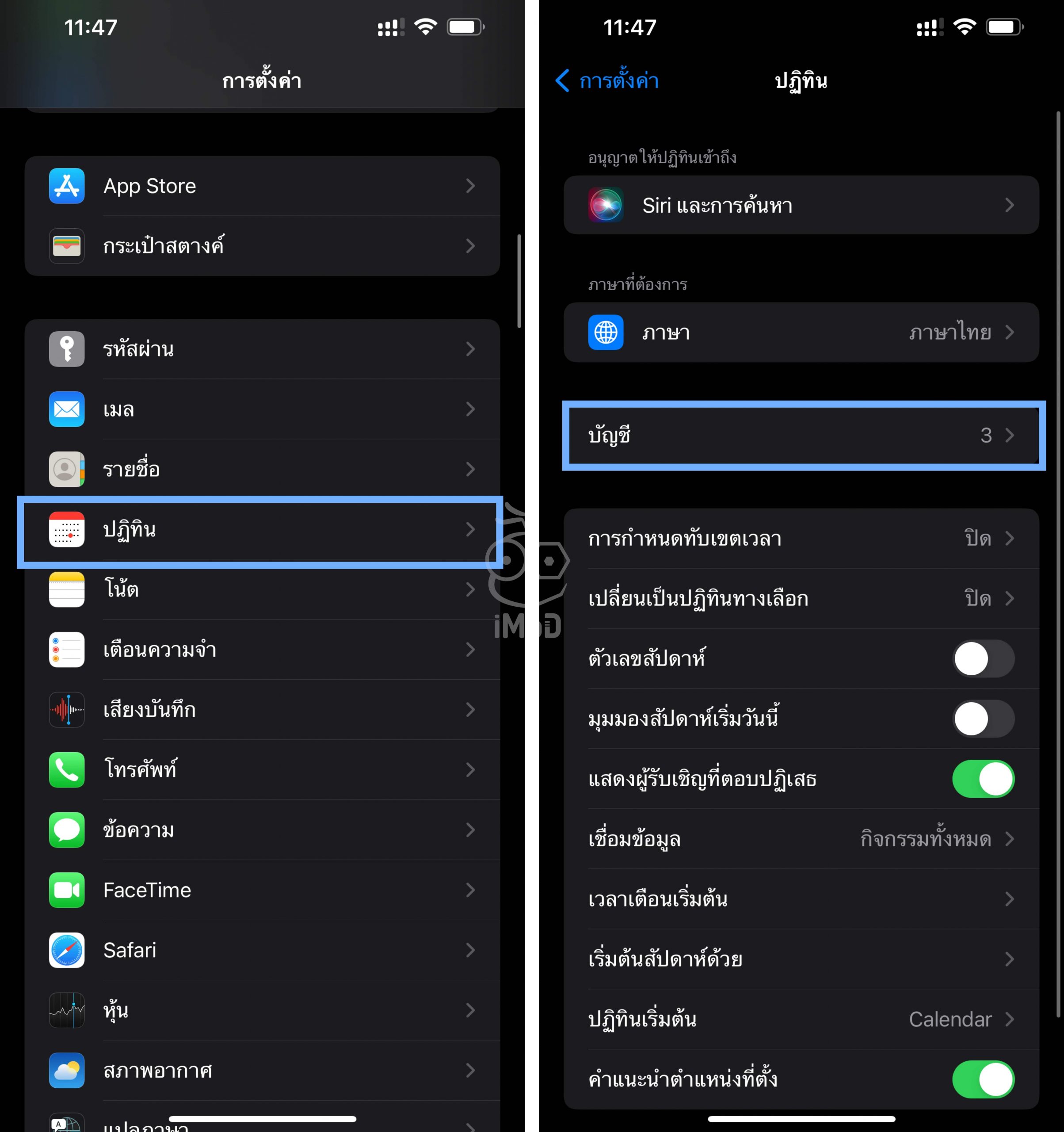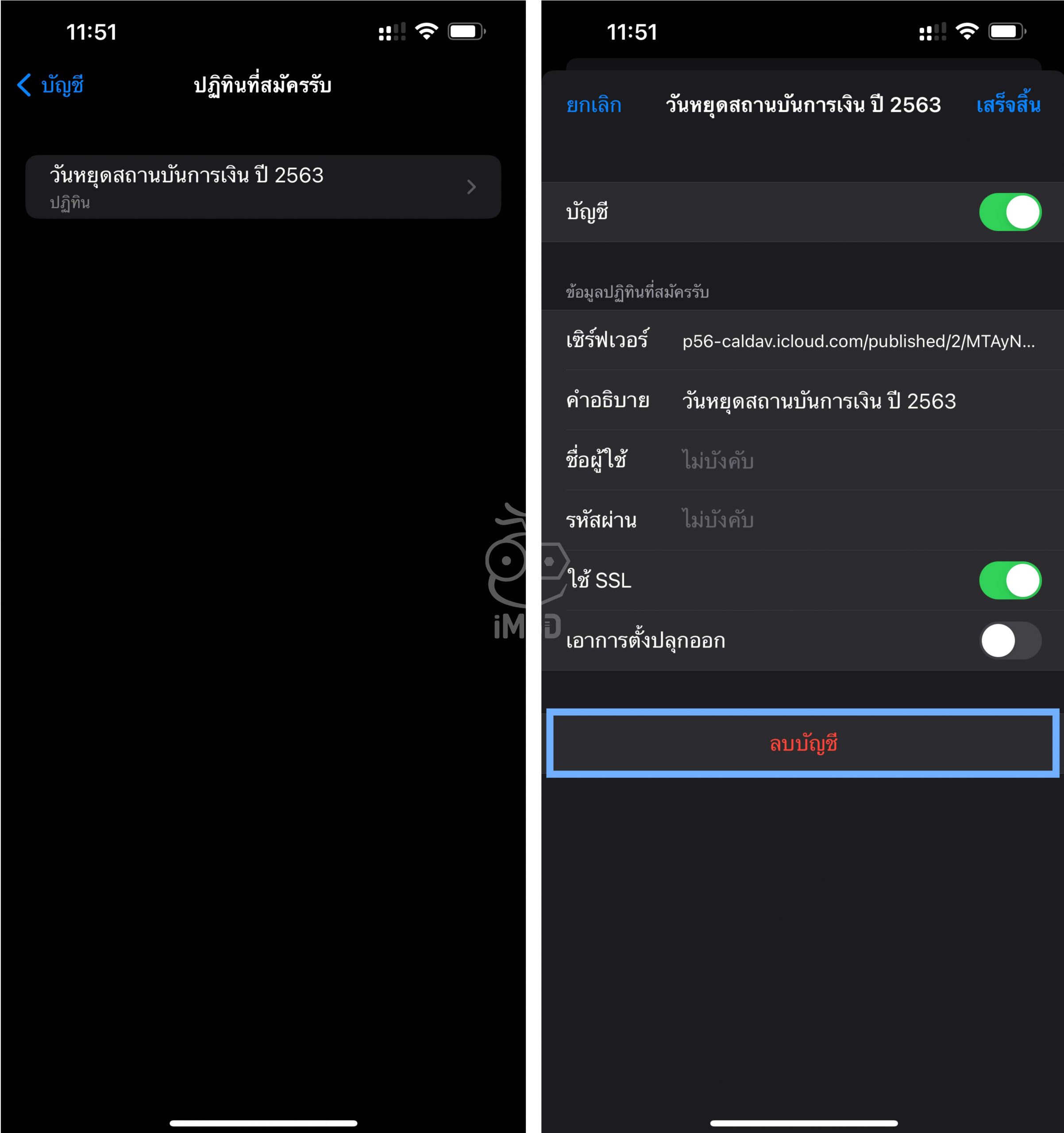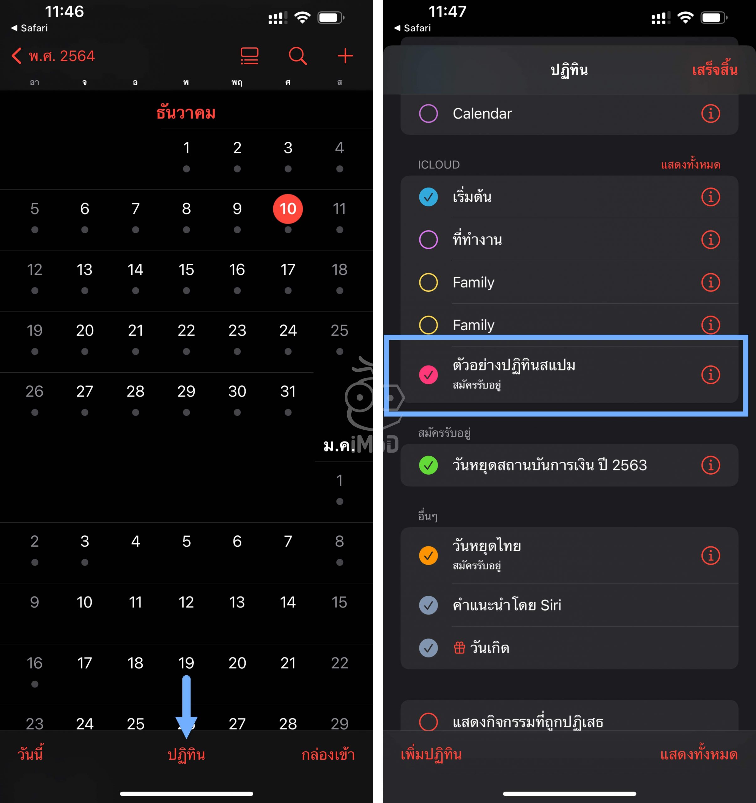 ผู้ใช้ยังสามารถลบปฏิทินที่ไม่ต้องการในการตั้งค่าได้ด้วย