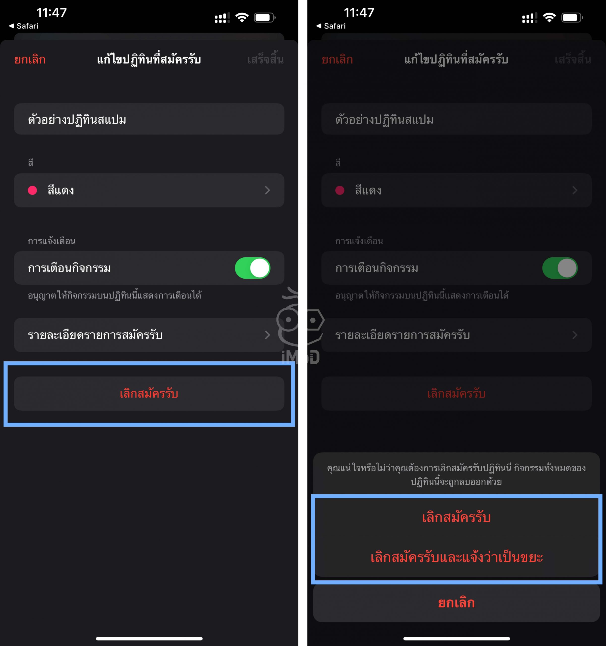 แตะ “เลิกสมัครรับ” > แตะ “เลิกสมัครรับ” หรือถ้าหากดูแล้วเป็นปฏิทินที่สร้างความรำคาญให้แตะ “เลิกสมัครรับและแจ้งว่าเป็นขยะ”