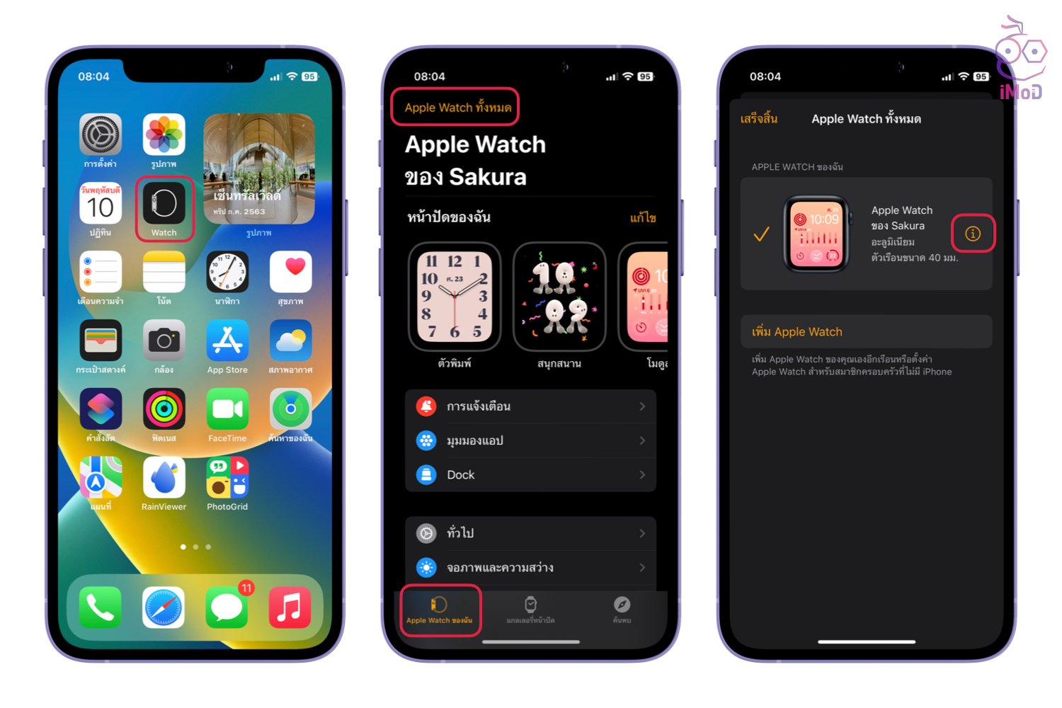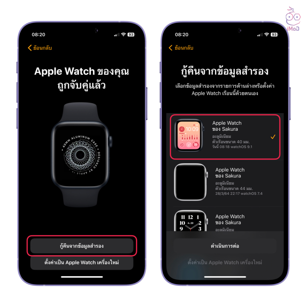 วิธีนี้ เราจะต้องเลิกจับคู่ Apple Watch แล้วทำการจับคู่ Apple Watch กับ iPhone ใหม่อีกครั้ง จากนั้นก็กู้คืนข้อมูลสำรอง