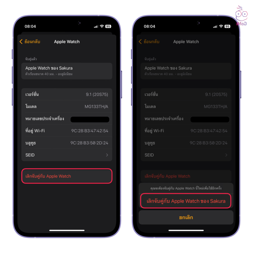 Apple Watch ก็จะเลิกจับคู่กับ iPhone