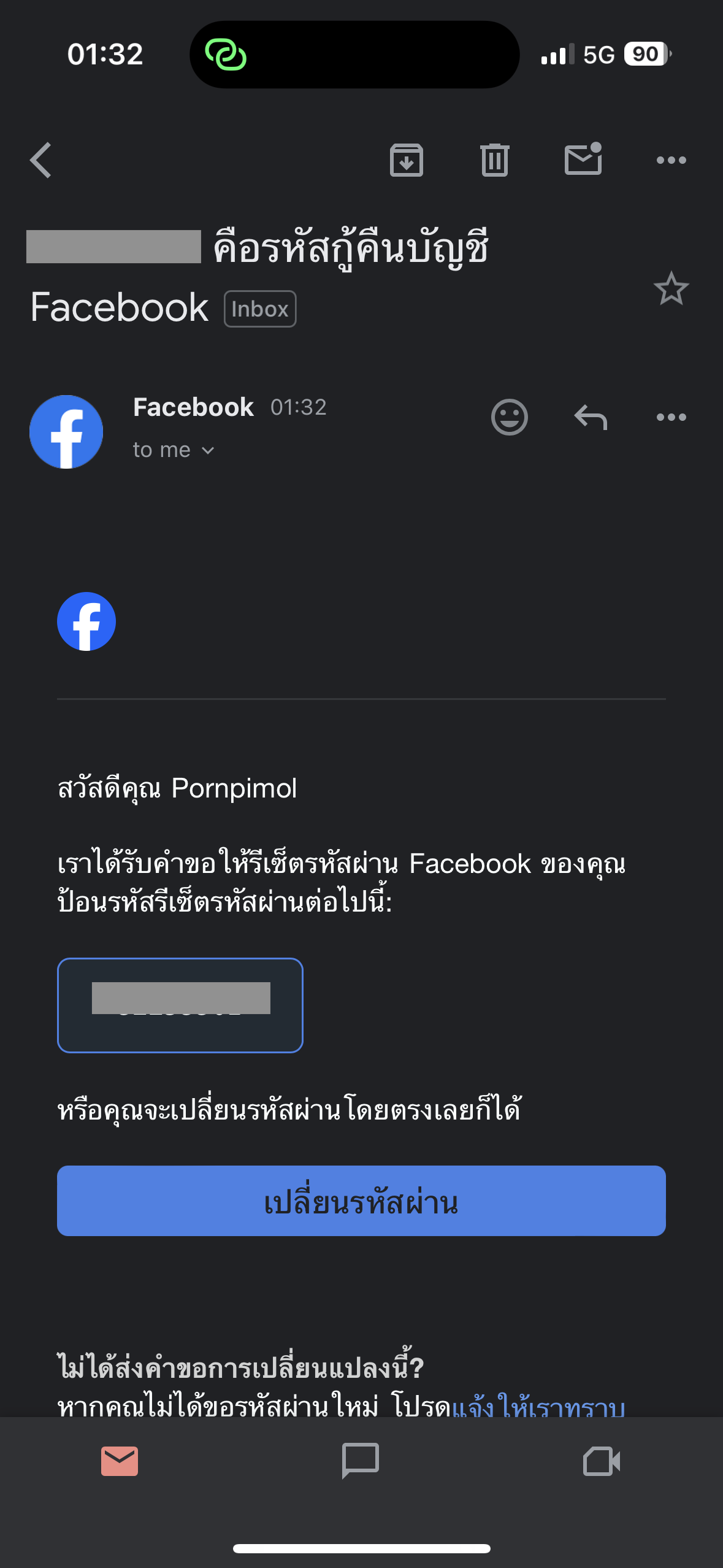 3. กลับไปเช็ครหัสกู้คืนในอีเมล > กรอกรหัสกู้คืน > ตั้งค่ารหัสผ่านใหม่