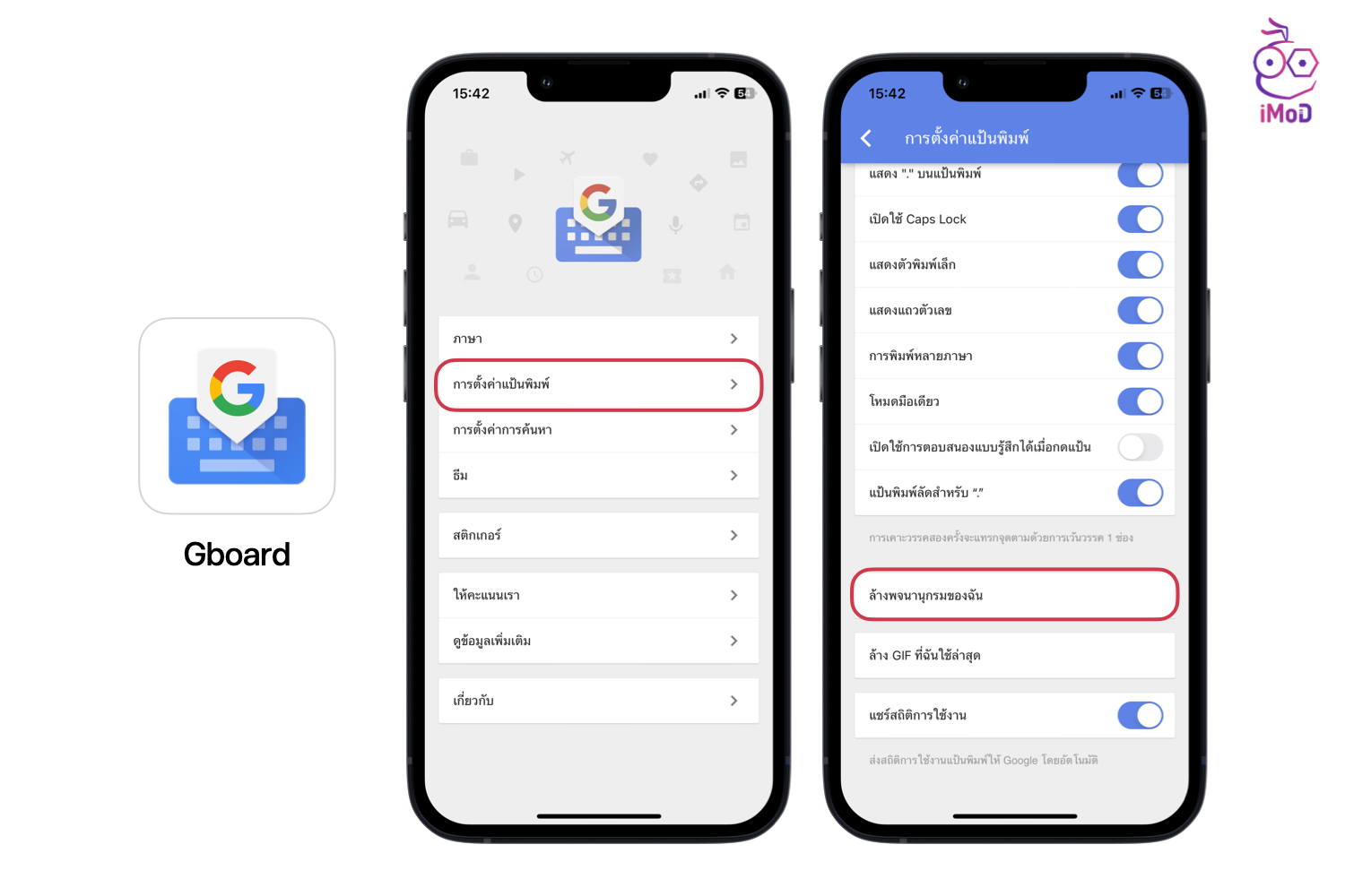 ส่วนใครที่ใช้งาน Gboard เป็นคีย์บอร์ดหลัก ก็สามารถรีเซ็ตได้ดังนี้ ไปที่แอป Gboard > การตั้งค่าแป้นพิมพ์ > ล้างพจนานุกรมของฉัน