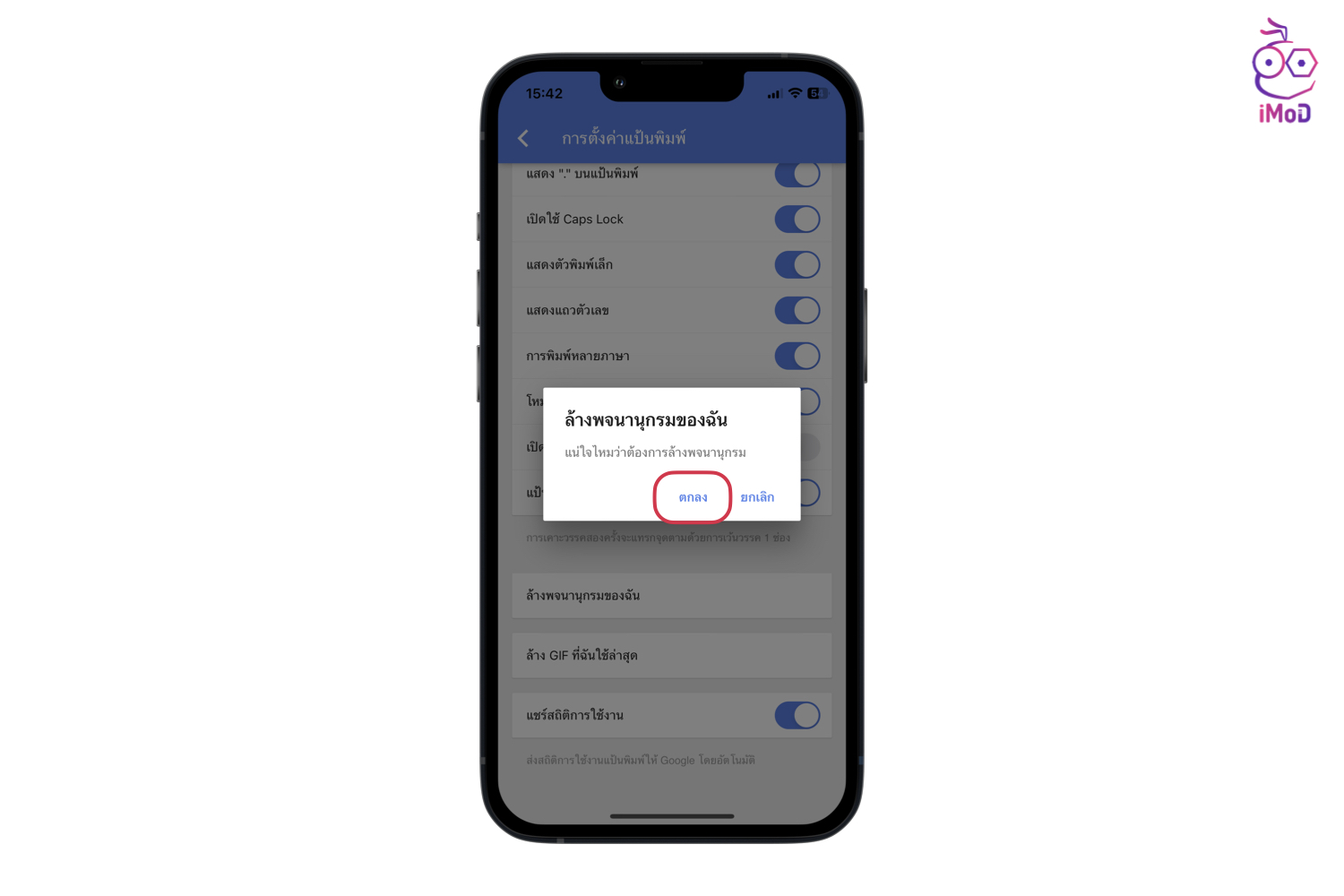 แตะ ตกลง เพื่อยืนยันการล้างข้อมูล