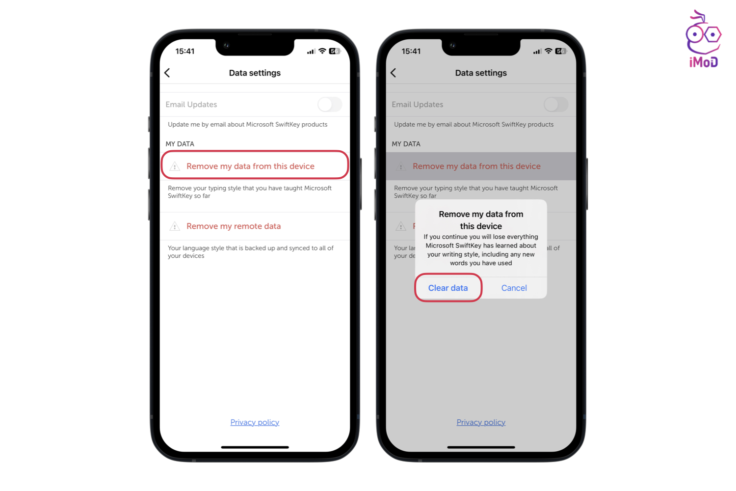 ใครที่ใช้งาน SwiftKey เป็นคีย์บอร์ดหลัก ก็สามารถรีเซ็ตได้เช่นกัน ไปที่แอป Swift Keyboard > Account > Data settings