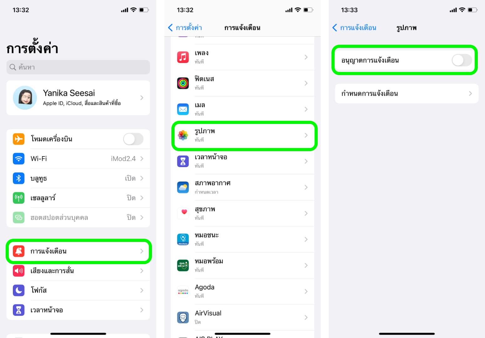เข้าไปที่ การตั้งค่า > การแจ้งเตือน > เลือกแอป > ปิดการแจ้งเตือน