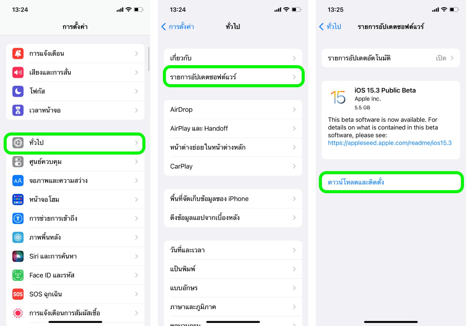 วิธีตรวจสอบการอัปเดตซอฟต์แวร์ก็ง่าย ๆ ให้เข้าไปที่ การตั้งค่า > ทั่วไป > รายการอัปเดตซอฟต์แวร์