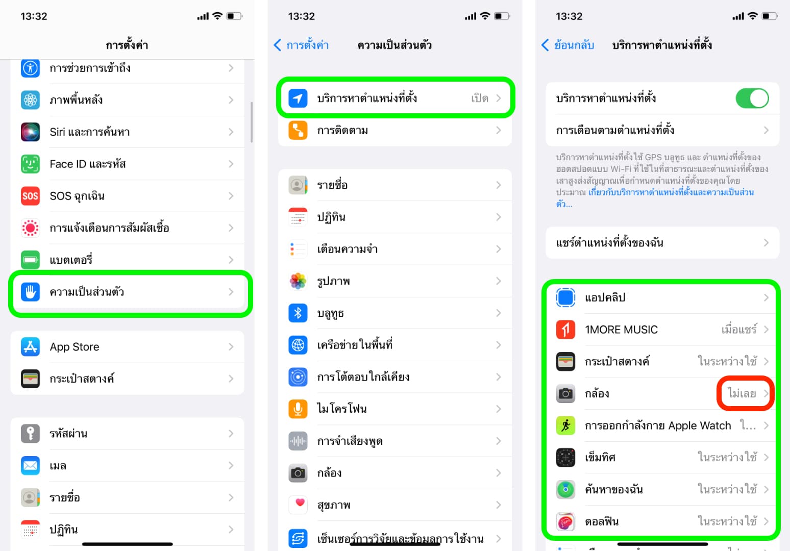 แนะนำให้เลือกปิดบริการตำแหน่งที่ตั้งเป็นแอป ๆ ไป โดยเข้าไปที่ การตั้งค่า > ความเป็นส่วนตัว > บริการตำแหน่งที่ตั้ง > เลือกแอปที่จะปิด > แล้วเลือก “ไม่เลย”