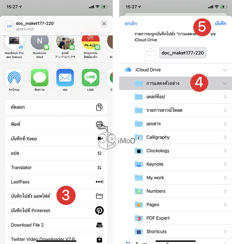 แตะ บันทึกไปยังแอปไฟล์ (Save to File) > แตะเลือกโฟลเดอร์ที่ต้องการ แล้วแตะบันทึก (Save)