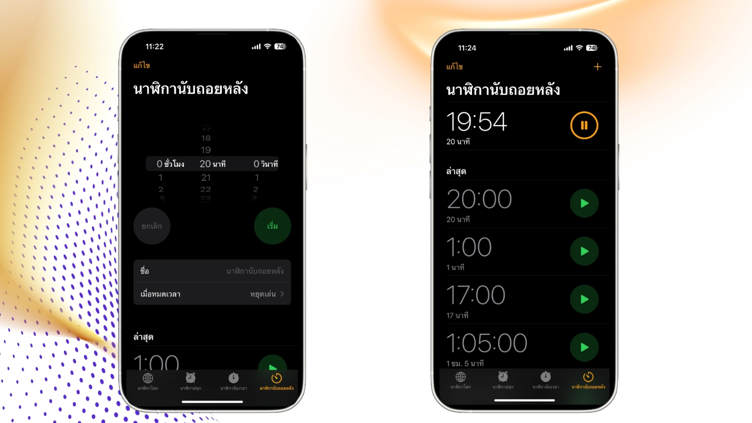 2. แตะที่แท็บ Timer (นาฬิกานับถอยหลัง)ที่มุมล่างขวาของหน้าจอ