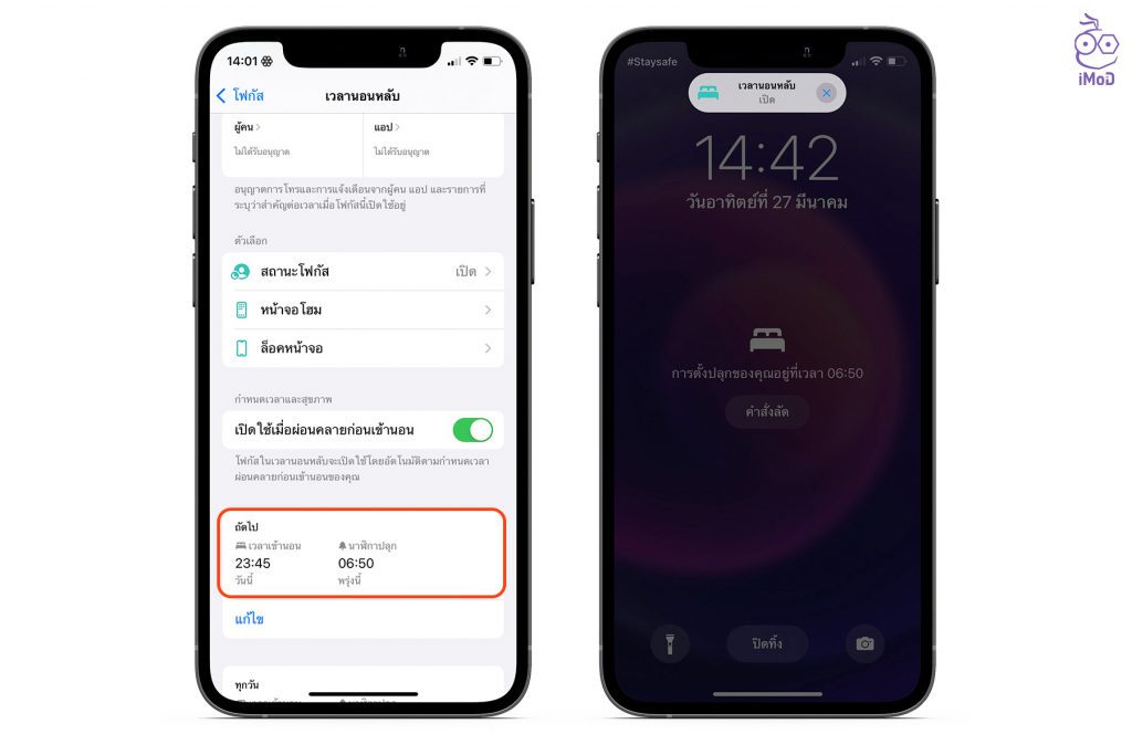 เรื่องของการนอนหลับก็สำคัญต่อสุขภาพของเรา โหมดนี้แนะนำสำหรับทุกคนเลยนะคะ เมื่อถึงเวลานอนเราก็ควรจะนอนหลับพักผ่อนอย่างเต็มที่ แนะนำให้ตั้งค่าเปิดใช้งานอัตโนมัติ โดยกำหนดเวลาเข้านอนและเวลาตื่น