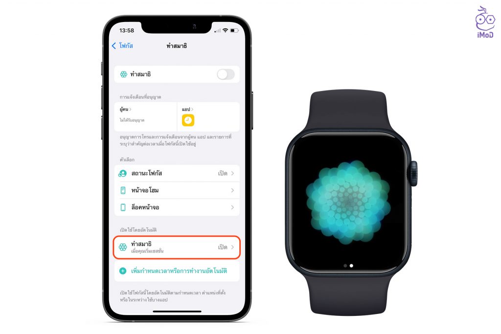 การทำสมาธิ เหมาะมาก ๆ สำหรับคนที่ชอบใช้เวลาส่วนตัวมานั่งทำสมาธิหรือฝึกหายใจด้วยแอปทำสมาธิบน Apple Watch แน่นอนว่าในขณะที่เรากำลังโฟกัสกับการทำสมาธิ เราคงจะไม่ต้องการการแจ้งเตือนต่าง ๆ บนข้อมือ ก็เปิดใช้การโฟกัสเมื่อทำสมาธิอัตโนมัติได้เลย
