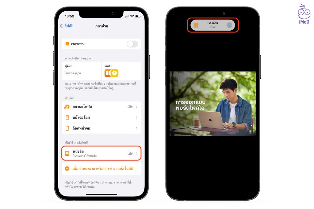 โดยอาจจะตั้งค่าการทำงานอัตโนมัติเปิดโหมดโฟกัสเวลาอ่านเมื่อเราเปิดแอปหนังสือนั่นเอง เหมาะกับคนที่ชอบอ่าน E-Book บน iPhone มาก ๆ