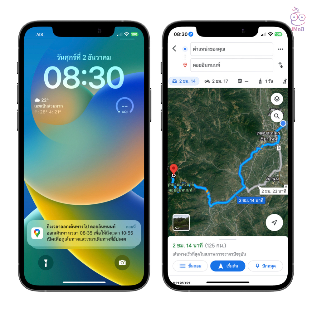 การแจ้งเตือนเวลาการออกเดินทางล่วงหน้านี้จะช่วยให้เราไม่ลืมที่จะเดินทางไปยังสถานที่ต่าง ๆ และมีเวลาเตรียมพร้อมก่อนออกเดินทาง ตั้งค่าได้ดังนี้