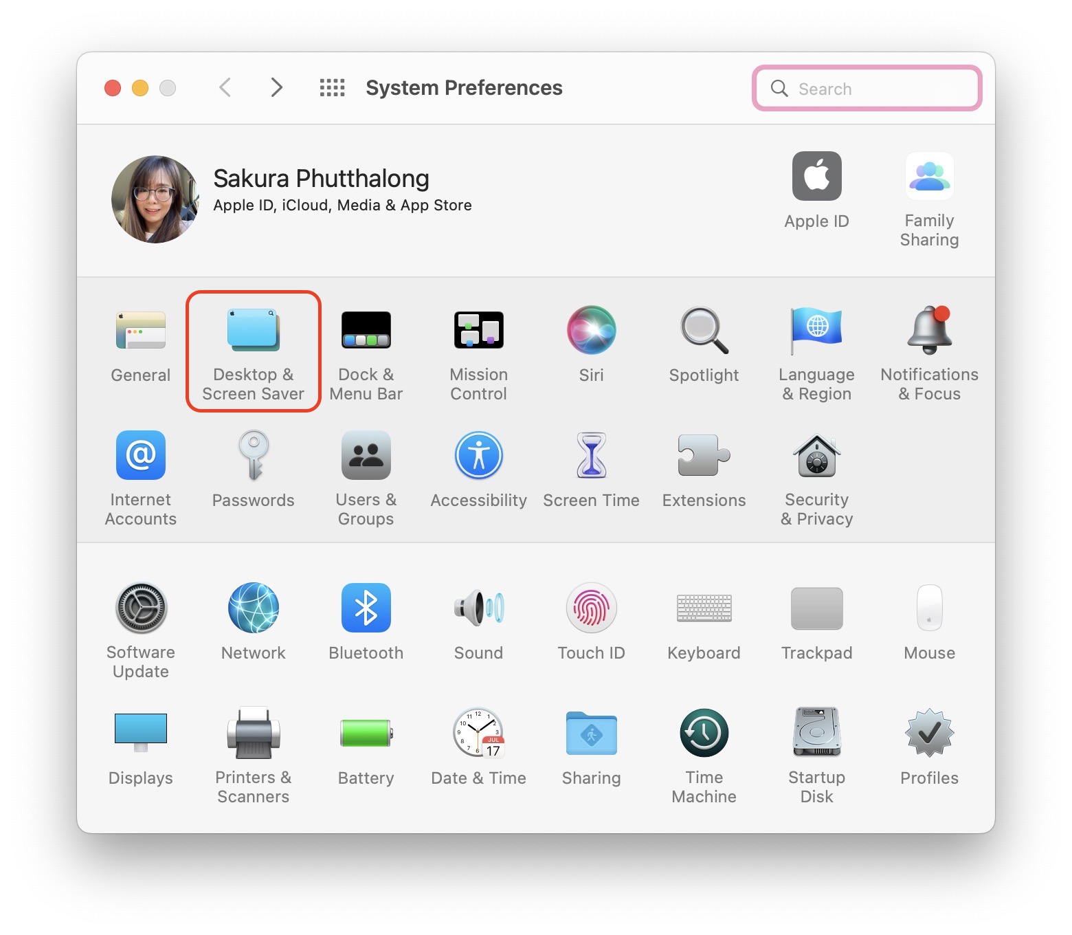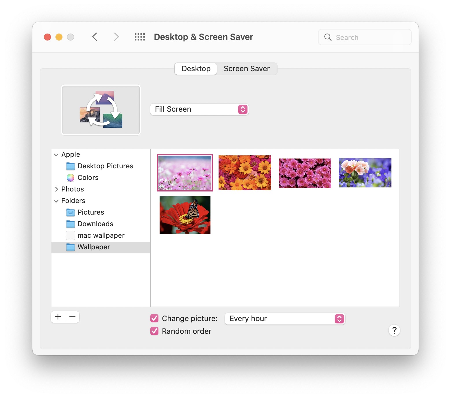 หากเรามีภาพพื้นหลังที่บันทึกเก็บไว้อยู่แล้ว และต้องการให้ภาพพื้นหลังเหล่านั้นสลับเปลี่ยนอัตโนมัติ สามารถตั้งค่าได้ โดยไปที่ System Preferences > Desktop & Scree Saver