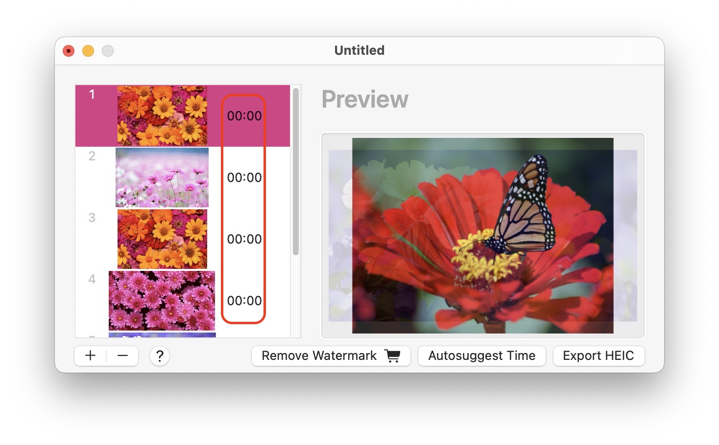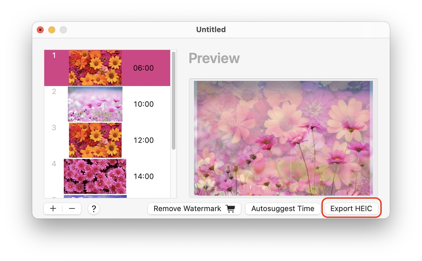 เมื่อกำหนดเวลาเปลี่ยนภาพพื้นหลังให้แต่ละภาพแล้ว ให้เราคลิก Export HEIC