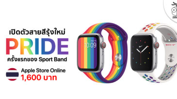 นอกจากจะปล่อยหน้าปัดสีรุ้งมาให้ใช้งานกันแล้ว เมื่อวานนี้ (18 พ.ค. 63) Apple ยังได้เปิดตัวสาย Sport Band รุ่น Pride Edition ใหม่อีกด้วย เป็นโทนสีพาสเทล เพื่อให้เข้ากับหน้าปัดใหม่นี้ และถือว่าเป็นครั้งแรกที่เปิดตัว Pride Edition แบบสาย Sport Band และ Sport Band Nike