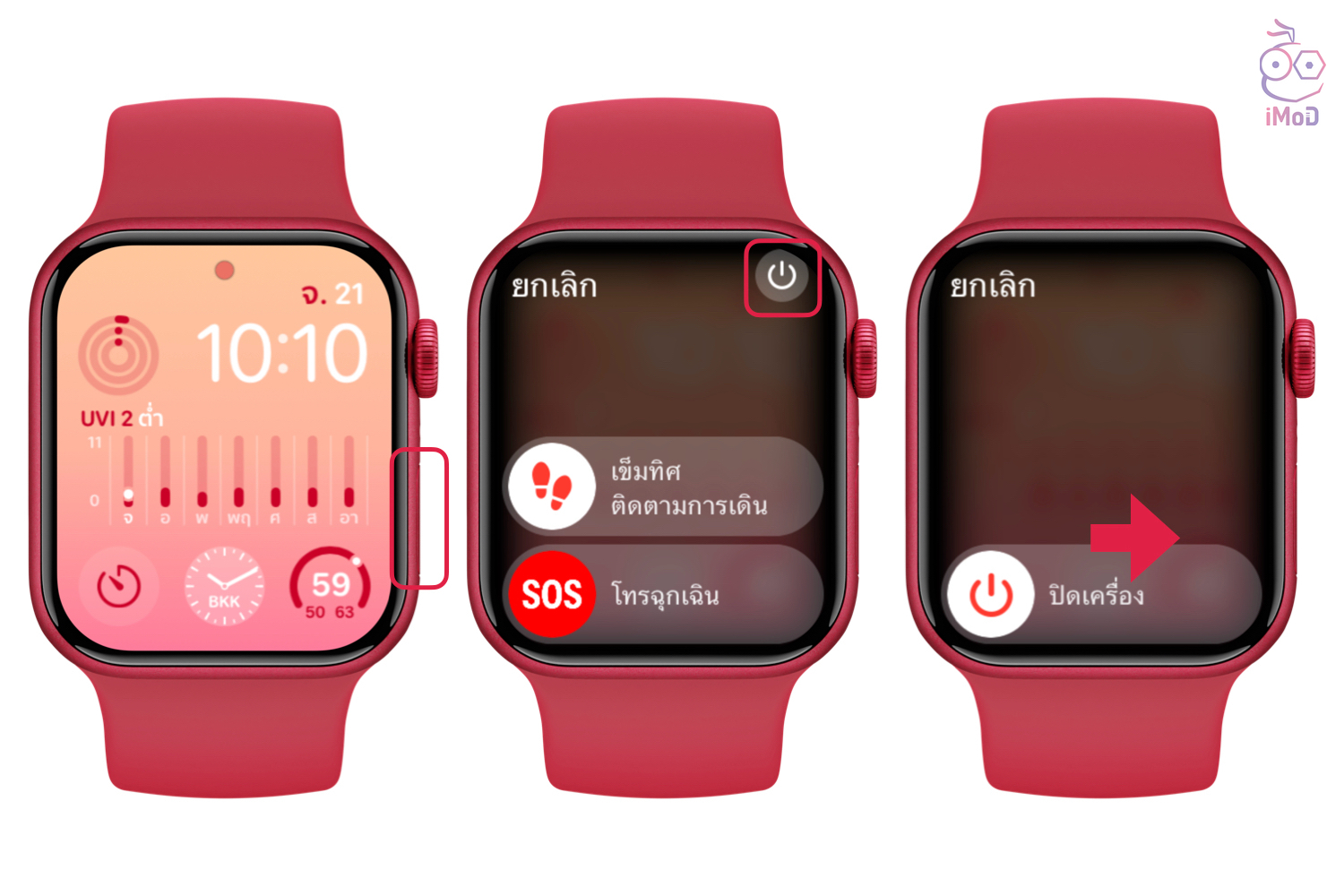 กดปุ่มด้านข้างค้างไว้ > แตะไอคอนปิดเครื่อง > เลื่อนปิดเครื่องไปทางขวา