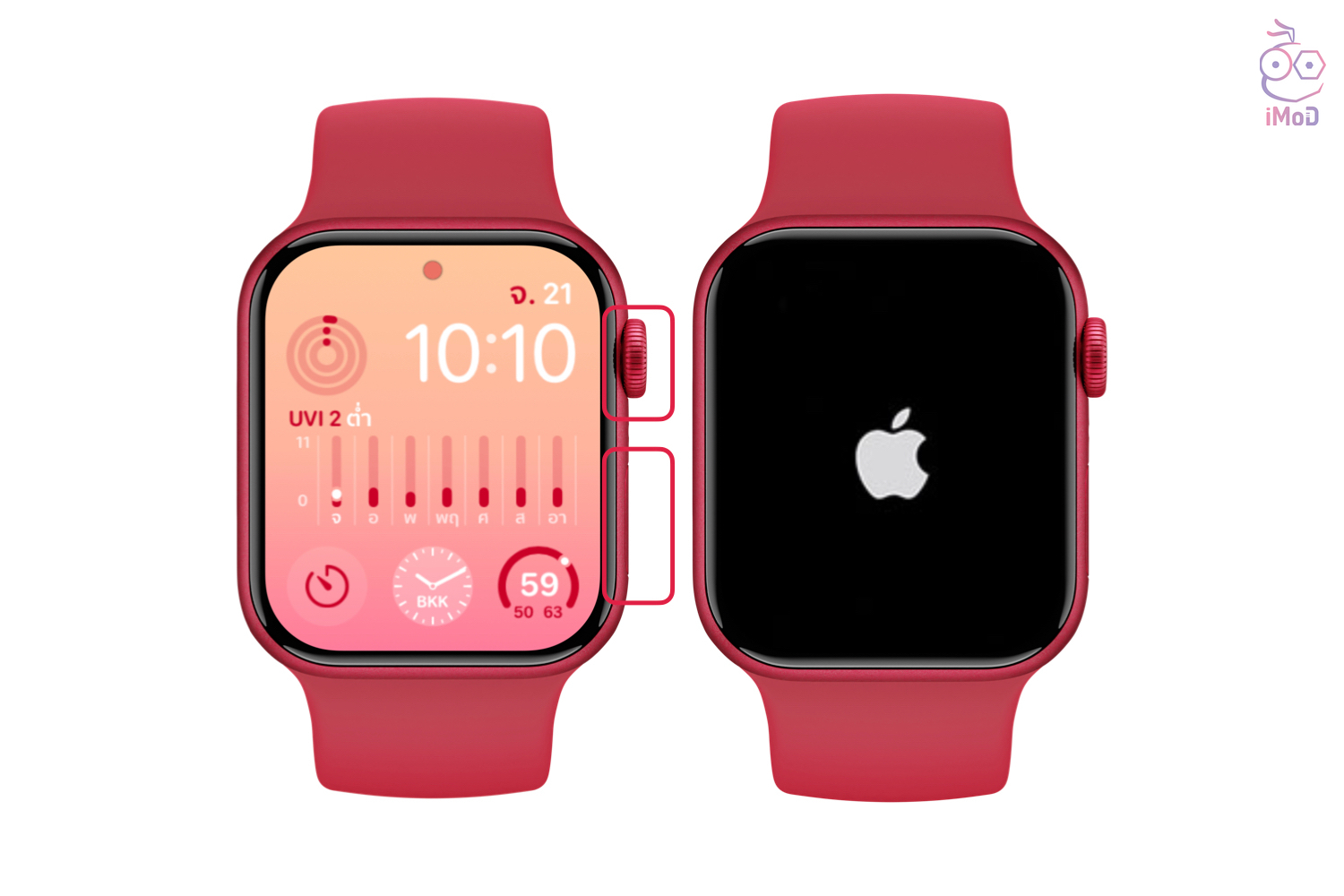 ทำได้โดยกดปุ่ม Digital Crown พร้อมกับปุ่มด้านข้าง ค้างไว้ จนกว่าหน้าจอจะดับและแสดงโลโก้ Apple จากนั้นก็รอให้ Apple Watch เปิดเครื่อง