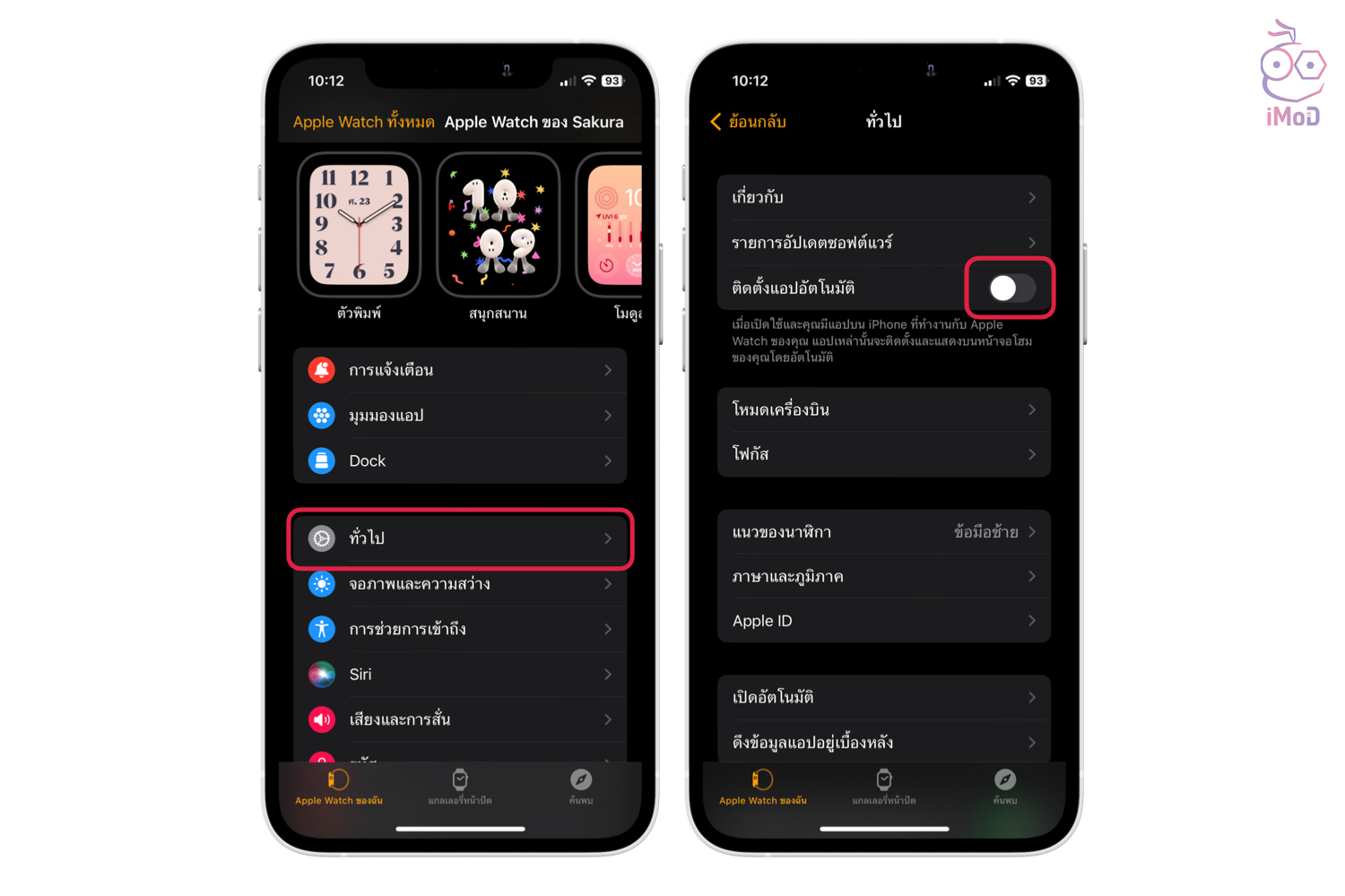 ไปที่แอป Watch > ทั่วไป (General) > ปิด ติดตั้งแอปอัตโนมัติ (Automatic App Install)