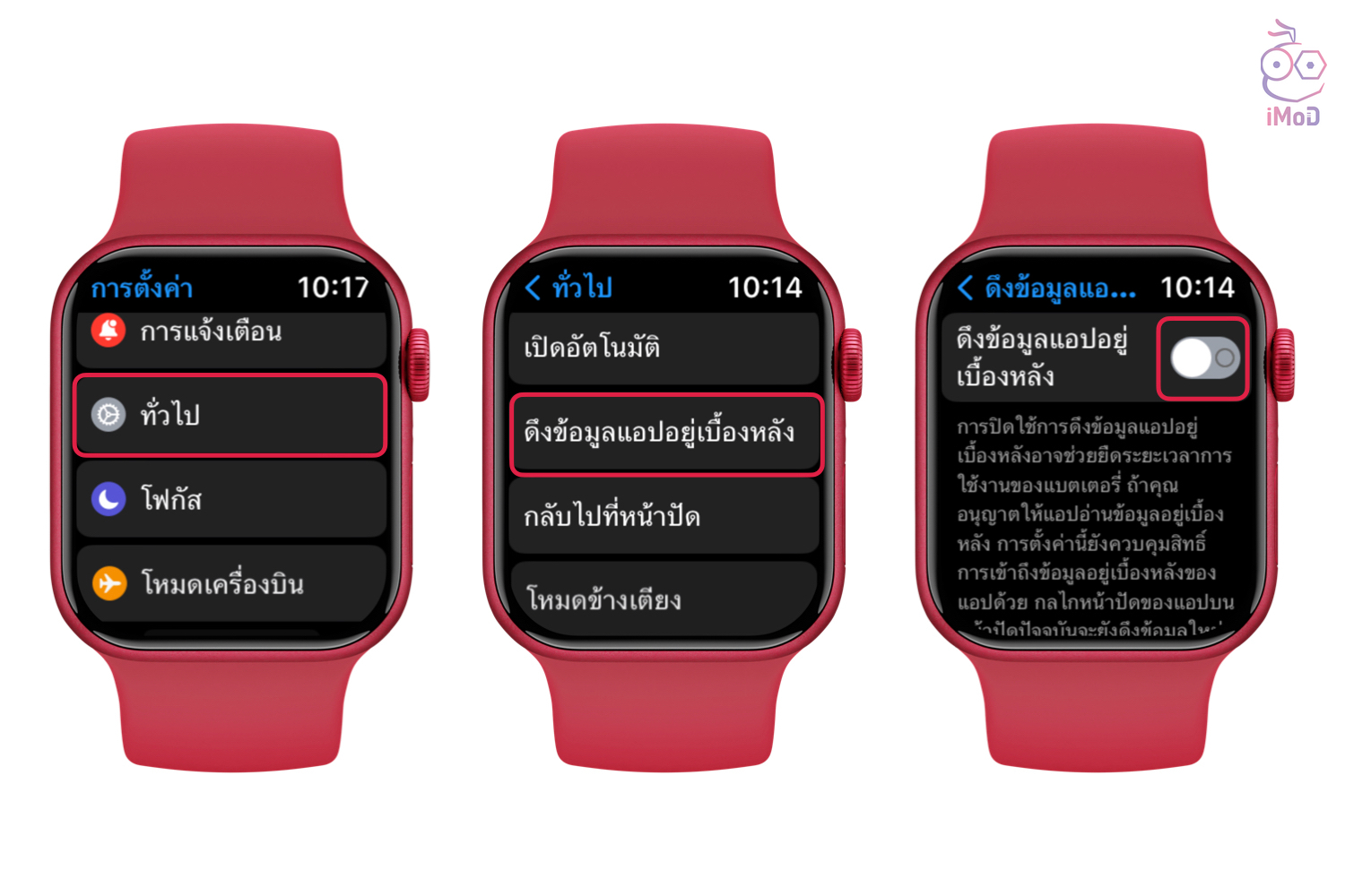 บางแอปมีการทำงานเบื้องหลังอย่างต่อเนื่อง ถึงแม้ว่าผู้ใช้จะไม่ได้เปิดแอปนั้นขึ้นมาใช้งาน เพื่อรีเฟรชข้อมูลให้ใหม่อยู่เสมอ ซึ่งก็เป็นข้อดี แต่เนื่องจากการรีเฟรช ดึงข้อมูล และอัปเดตใหม่เป็นประจำ จึงส่งผลต่อประสิทธิภาพของแบตเตอรี่ และทำให้ Apple Watch เราทำงานหน่วง เราก็สามารถตั้งค่าปิดได้