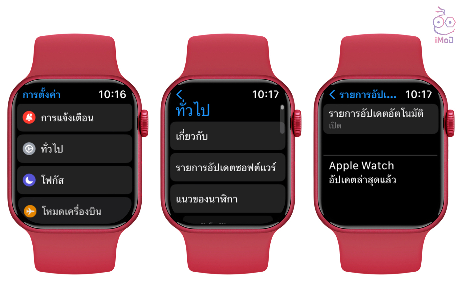 ไปที่ การตั้งค่า (Setting) > ทั่วไป (General) > รายการอัปเดตซอฟต์แวร์ (Software Upate) > เช็คดูว่า watchOS เป็นเวอร์ชันล่าสุดแล้วหรือยัง ถ้ายังให้ทำการอัปเดตให้เรียบร้อย