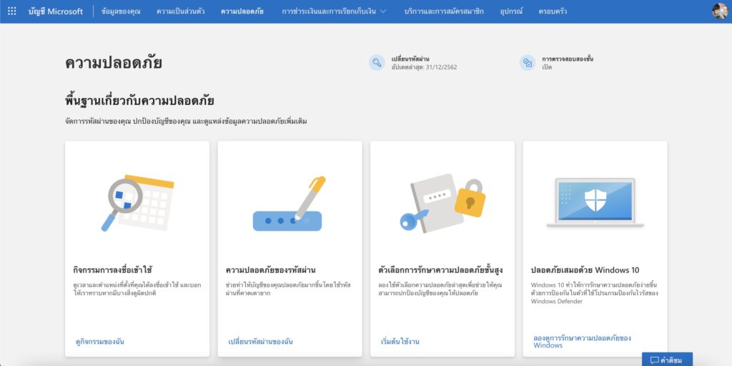 แนะนำให้ตั้งค่าบัญชีของเราให้สามารถกู้คืนได้ง่าย ในเวลาที่เราถูกแฮ็กหรือข้อมูลหาย โดยไปที่ส่วนพื้นฐานความปลอดภัยของ Microsoft [แตะที่นี่] และเพิ่มข้อมูลให้ครบถ้วน เช่น อีเมล หมายเลขโทรศัพท์ และตรวจสอบสม่ำเสมอว่าข้อมูลอัปเดตและใช้งานได้ เพื่อเพิ่มความปลอดภัยในการยืนยันมากขึ้น
