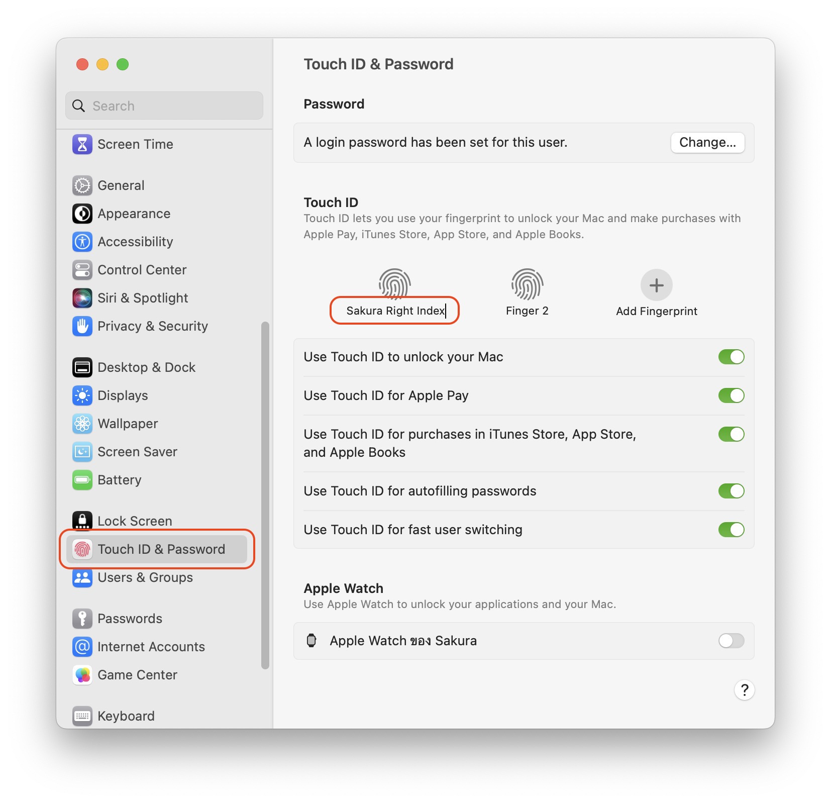 วิธีเปลี่ยนชื่อลายนิ้วมือ Touch ID บน Mac