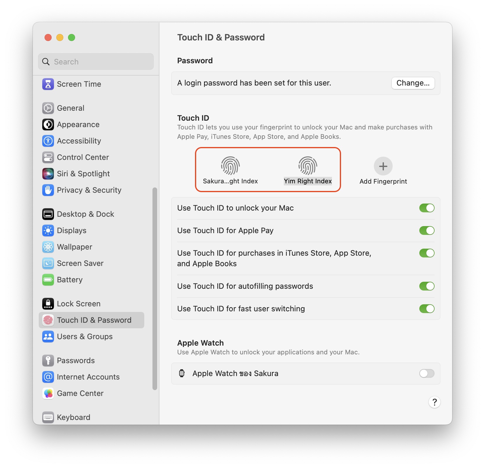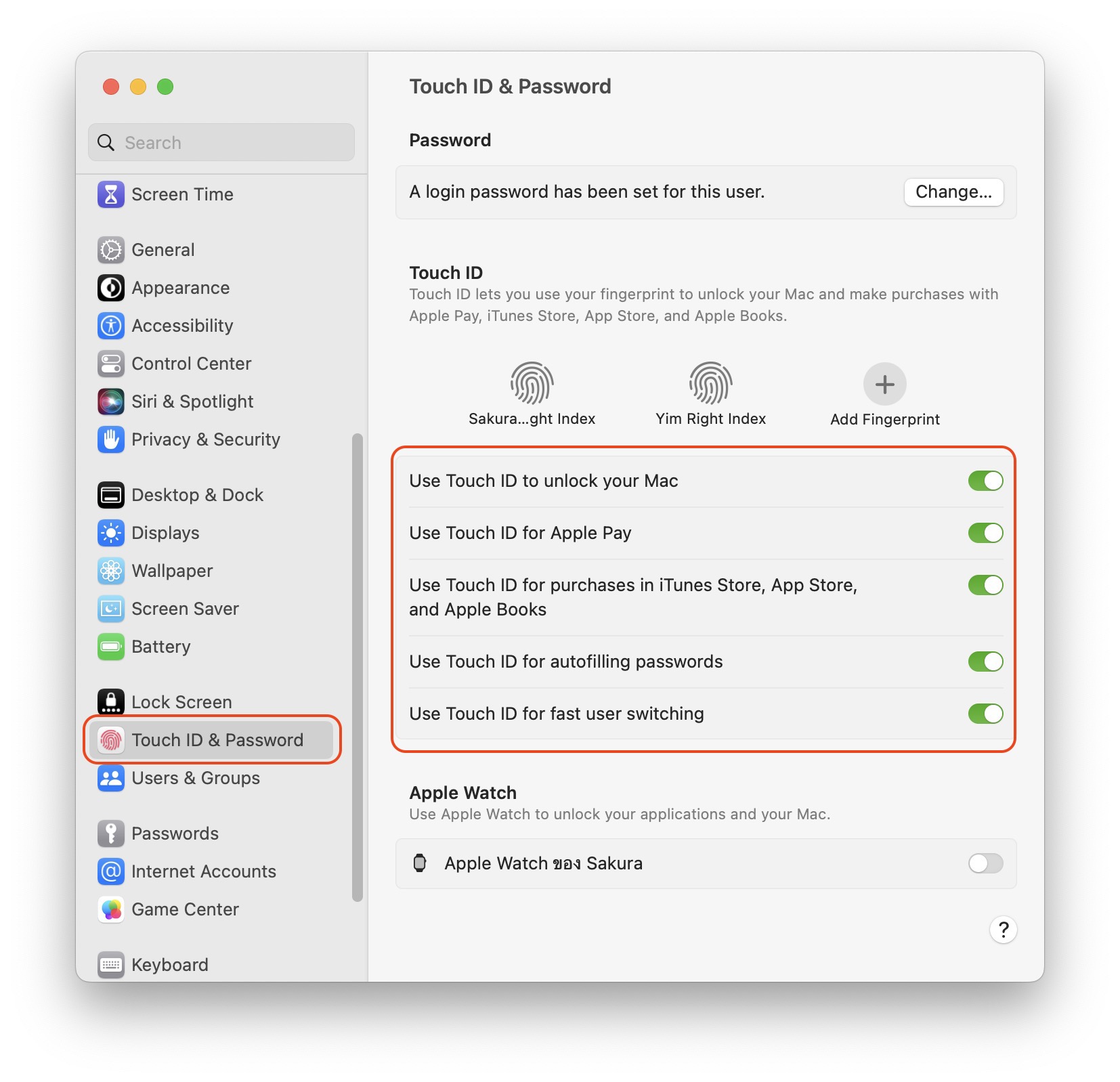 - Use Touch ID for fast user switching – ใช้ Touch ID สำหรับการสลับผู้ใช้งานบน Mac อย่างรวดเร็ว