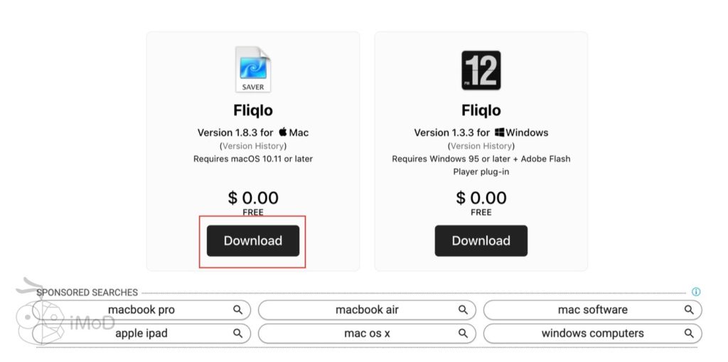 คลิก Download ในส่วน Fliqlo for Mac (ใครใช้ Windows ก็สามารถดาวน์โหลด Fliqlo for Windows ได้เลย)