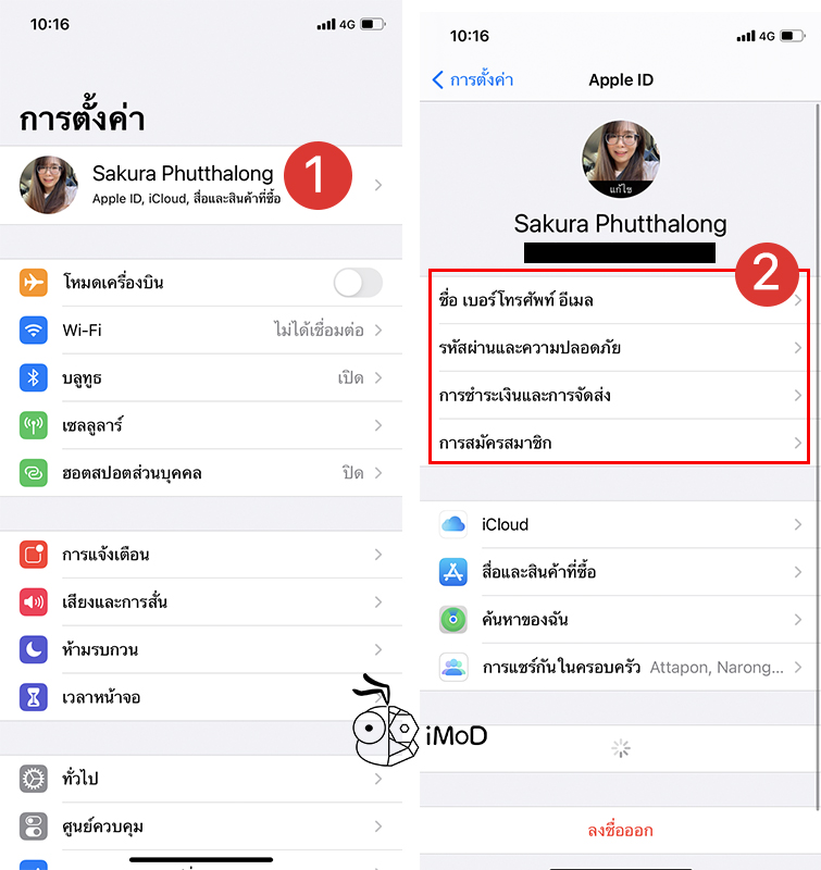 ไปที่ การตั้งค่า (Settings) > แตะที่ชื่อ Apple ID