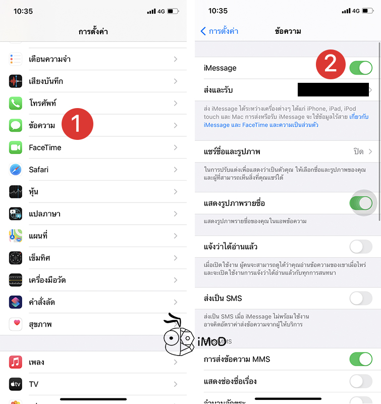 ไปที่ การตั้งค่า (Settings) > ข้อความ (iMessage) > เปิด iMessage สำหรับการส่งข้อความระหว่างอุปกรณ์ Apple ฟรี