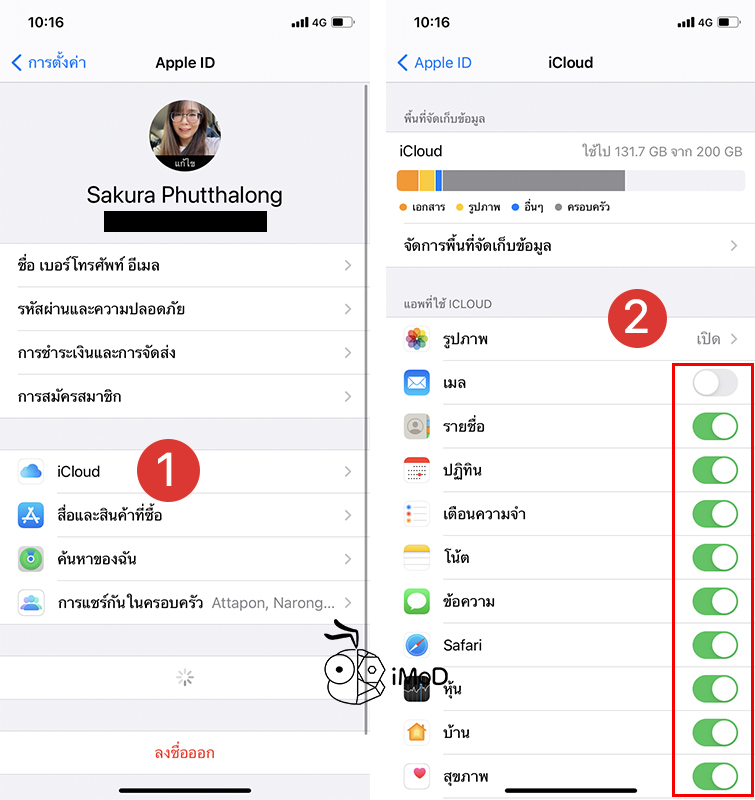 แนะนำ เปิดทุกแอปใน iCloud เพราะเวลาที่เราย้ายเครื่อง เครื่องหาย หรืออัปเดต iOS ใหม่ เราจะต้องสำรองข้อมูลบน iCloud