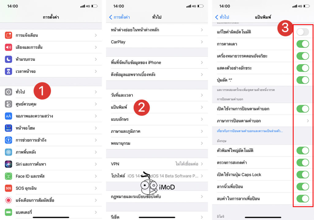 ไปที่ การตั้งค่า (Settings) > ทั่วไป (General) > แป้นพิมพ์ (Keyboard) > เลือกเปิดการตั้งค่าคีย์บอร์ดตามการใช้งานและความเหมาะสม