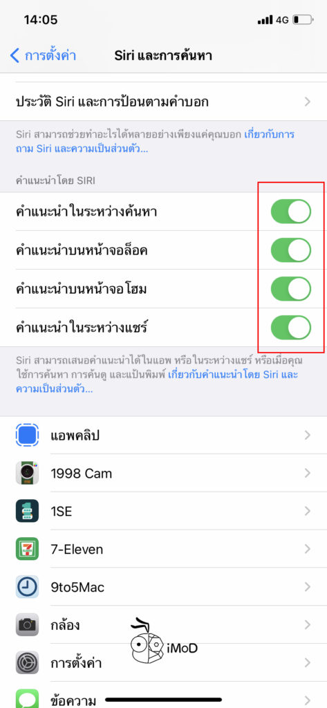 นอกจากนี้ เรายังตั้งค่าเปิดหรือปิด คำแนะนำโดย Siri ได้