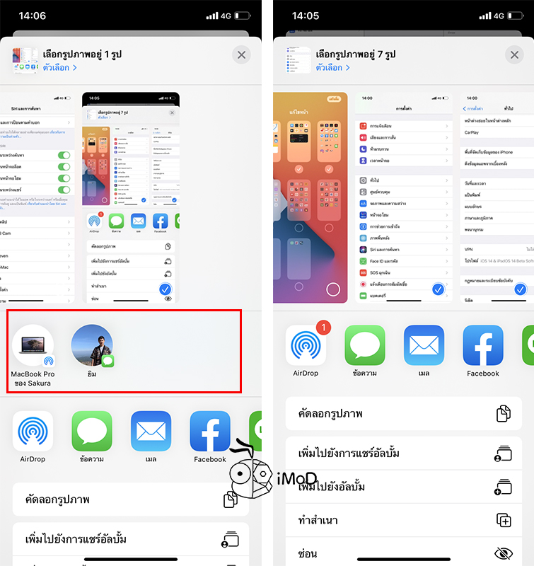 ตัวอย่างเช่น หากเราปิดคำแนะนำในระหว่างการแชร์ รายชื่อติดต่อที่เคยแสดงในหน้าจอแชร์ก็จะหายไป ดังรูป