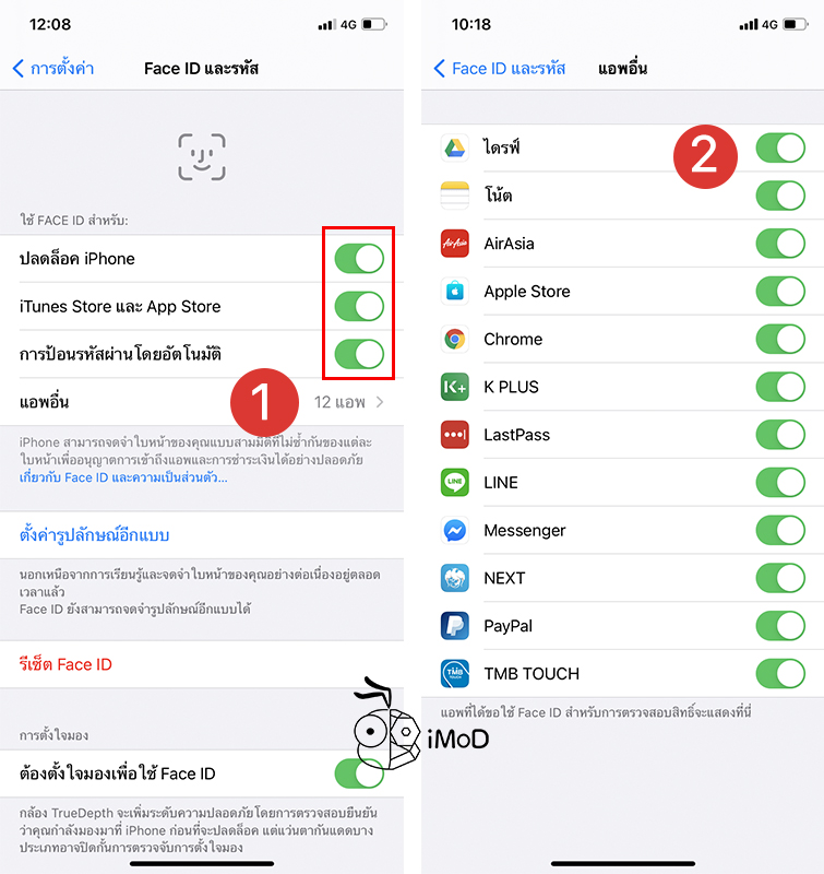 เมื่อตั้งค่าเสร็จเรียบร้อยแล้ว แนะนำว่าให้เปิดการยืนยันตัวตน Face ID หรือ Touch ID เวลาที่ใช้งาน iTunes Store และ App Store, การป้อนรหัสผ่านโดยอัตโนมัติ รวมถึงเปิดใช้งานสำกรับแอปอื่น ๆ ที่เราต้องการให้ปลดล็อคก่อนเข้าถึงแอปด้วย