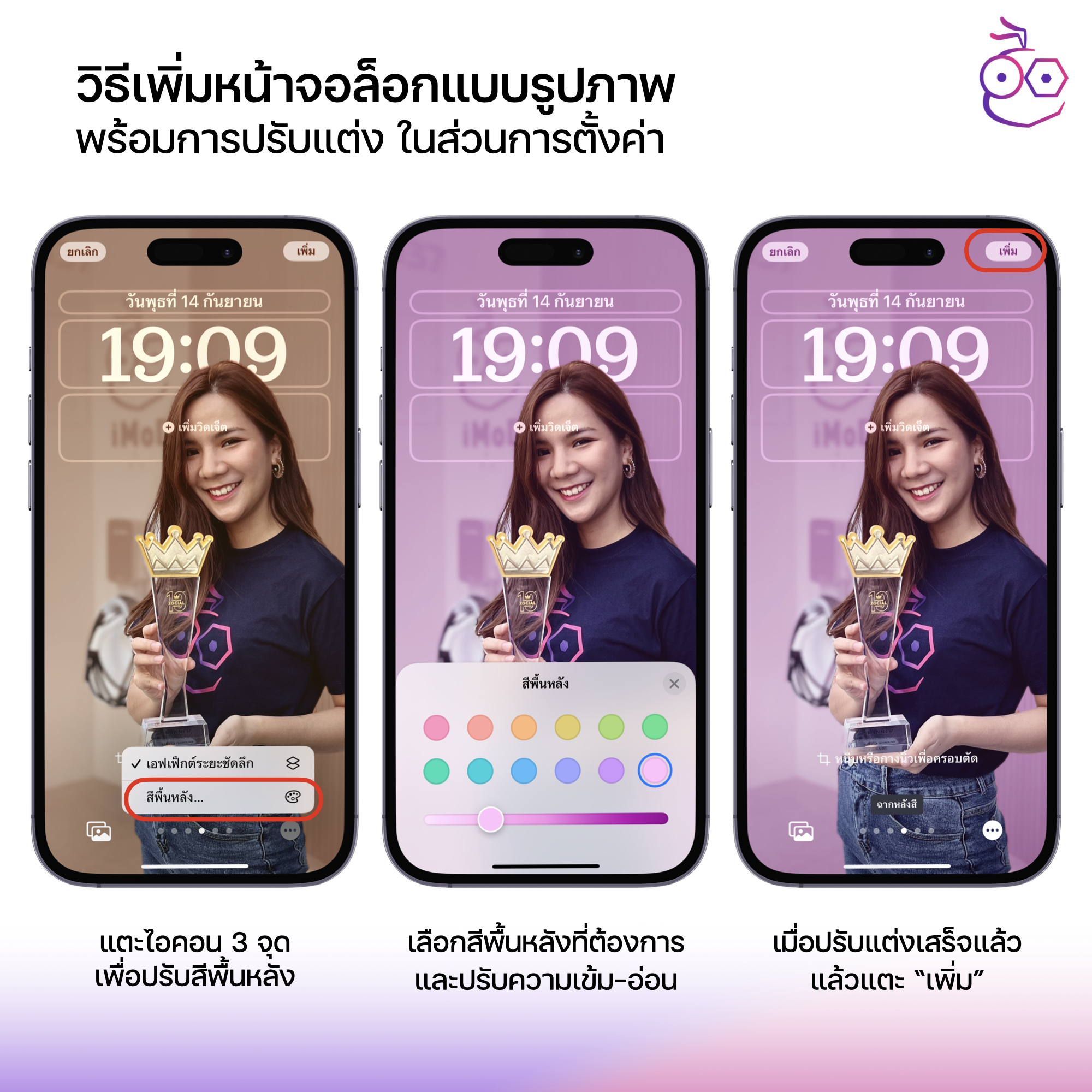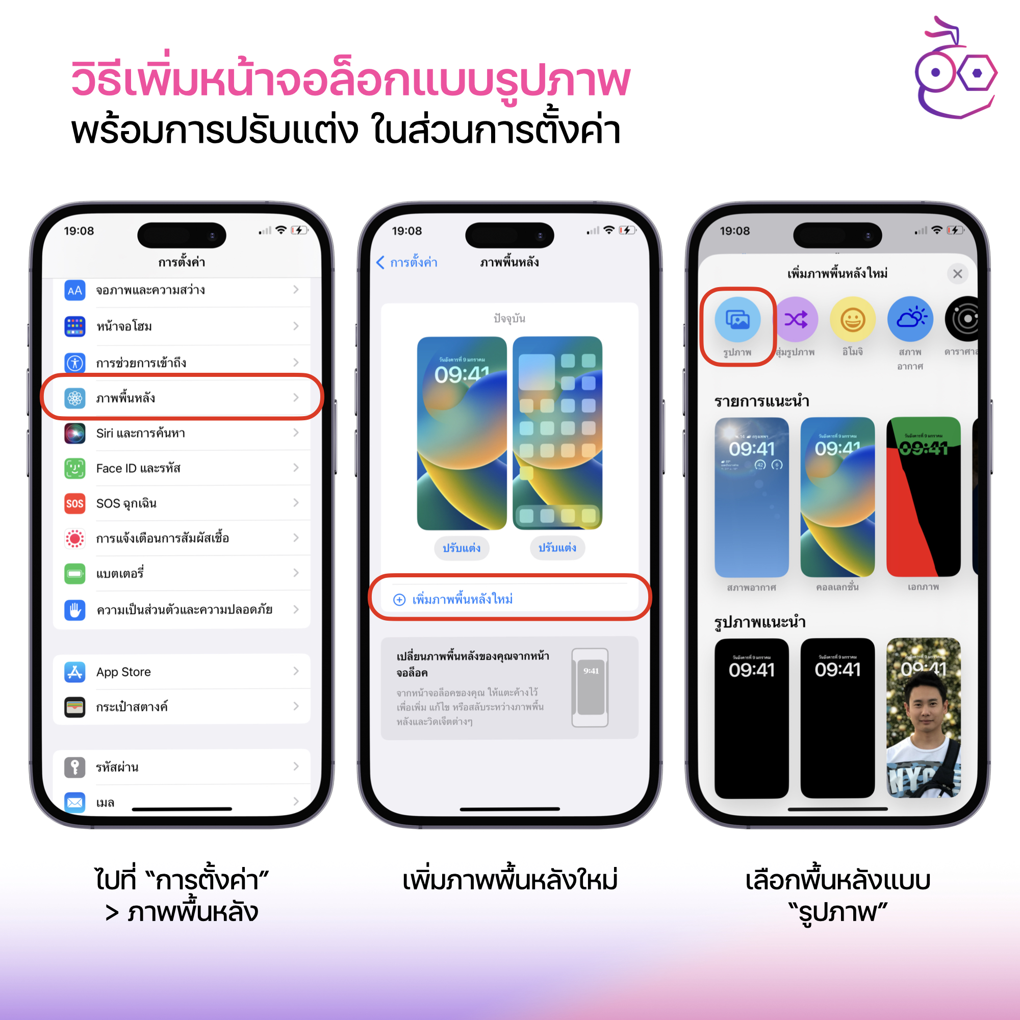 ในส่วนแรก ทีมงานจะสอนวิธีการเพิ่มหน้าจอล็อกรูปแบบรูปภาพที่แสดงแบบ 3 มิติ ทับนาฬิกาด้านบน เผื่อใครที่ชอบแสดงรูปภาพบนหน้าจอล็อก เริ่มต้นด้วยการไปที่ การตั้งค่า > เพิ่มพื้นหลังใหม่ > เลือกพื้นหลังประเภท “รูปภาพ”