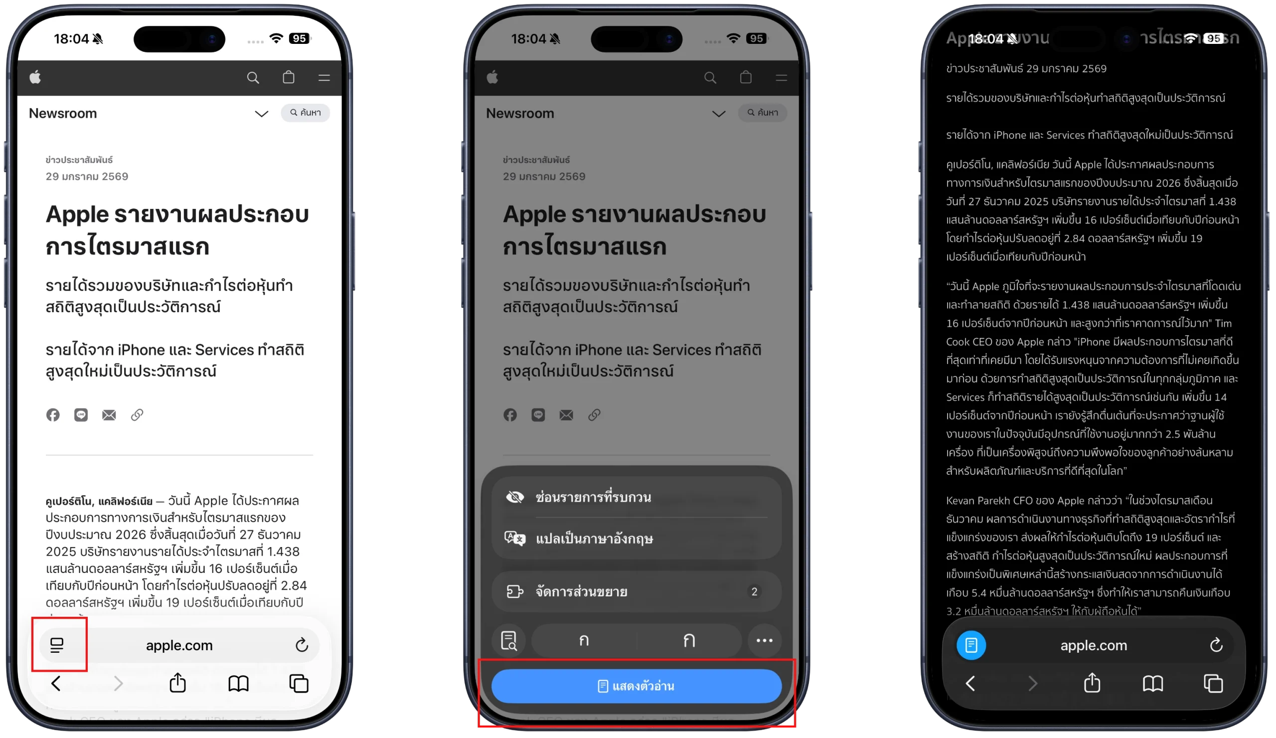 แตะไอคอนด้านซ้ายบนช่อง URLs > เลื่อนเปิด แสดงตัวอ่าน