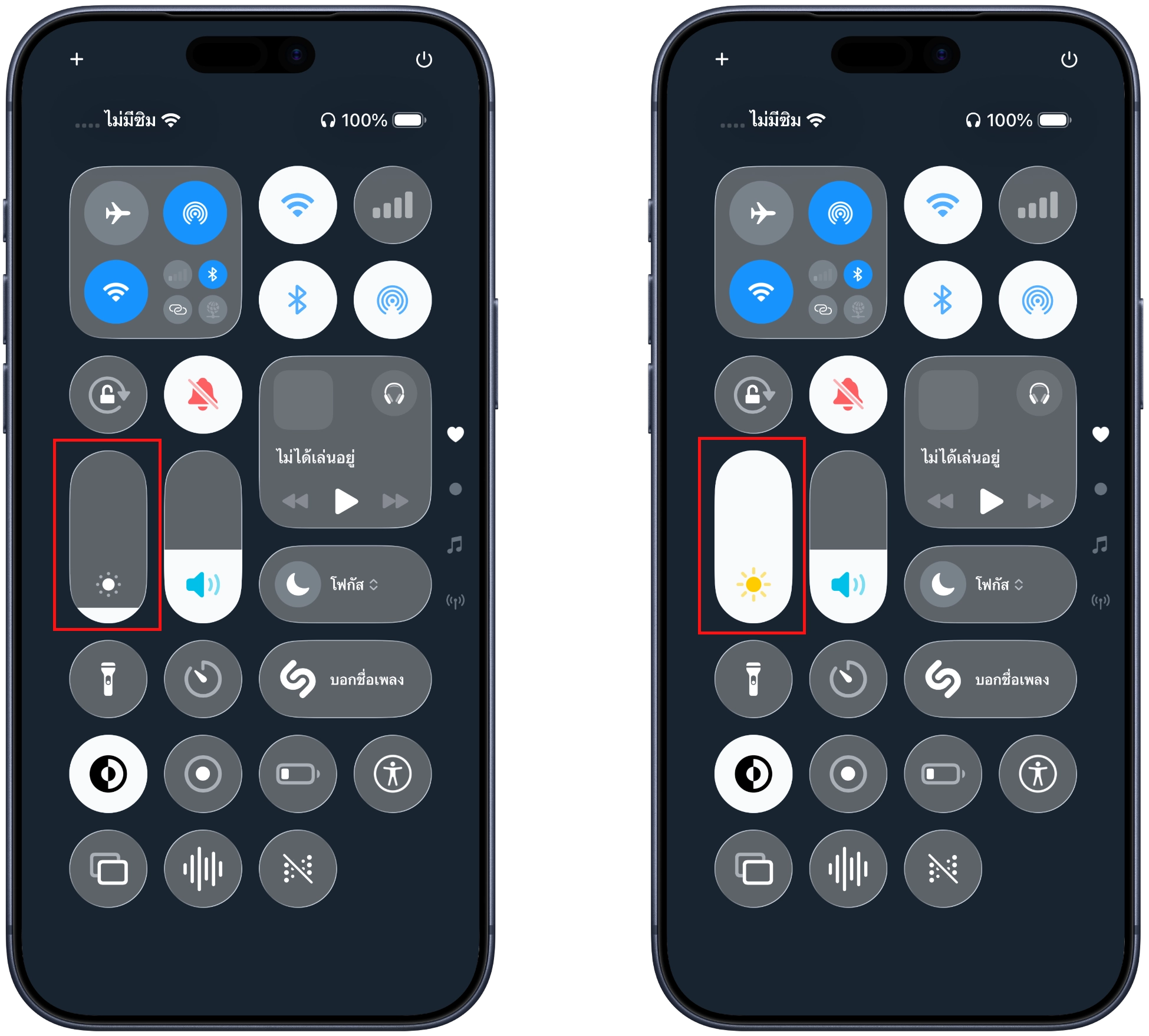 เลื่อน Control Center ลงมา เพื่อล็อกความสว่างหน้าจอ หรือตั้งค่าตามสถานการณ์