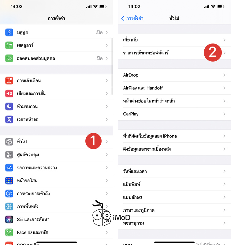 ไปที่ การตั้งค่า (Settings) > รายการอัปเดตซอฟต์แวร์ (Software Update)