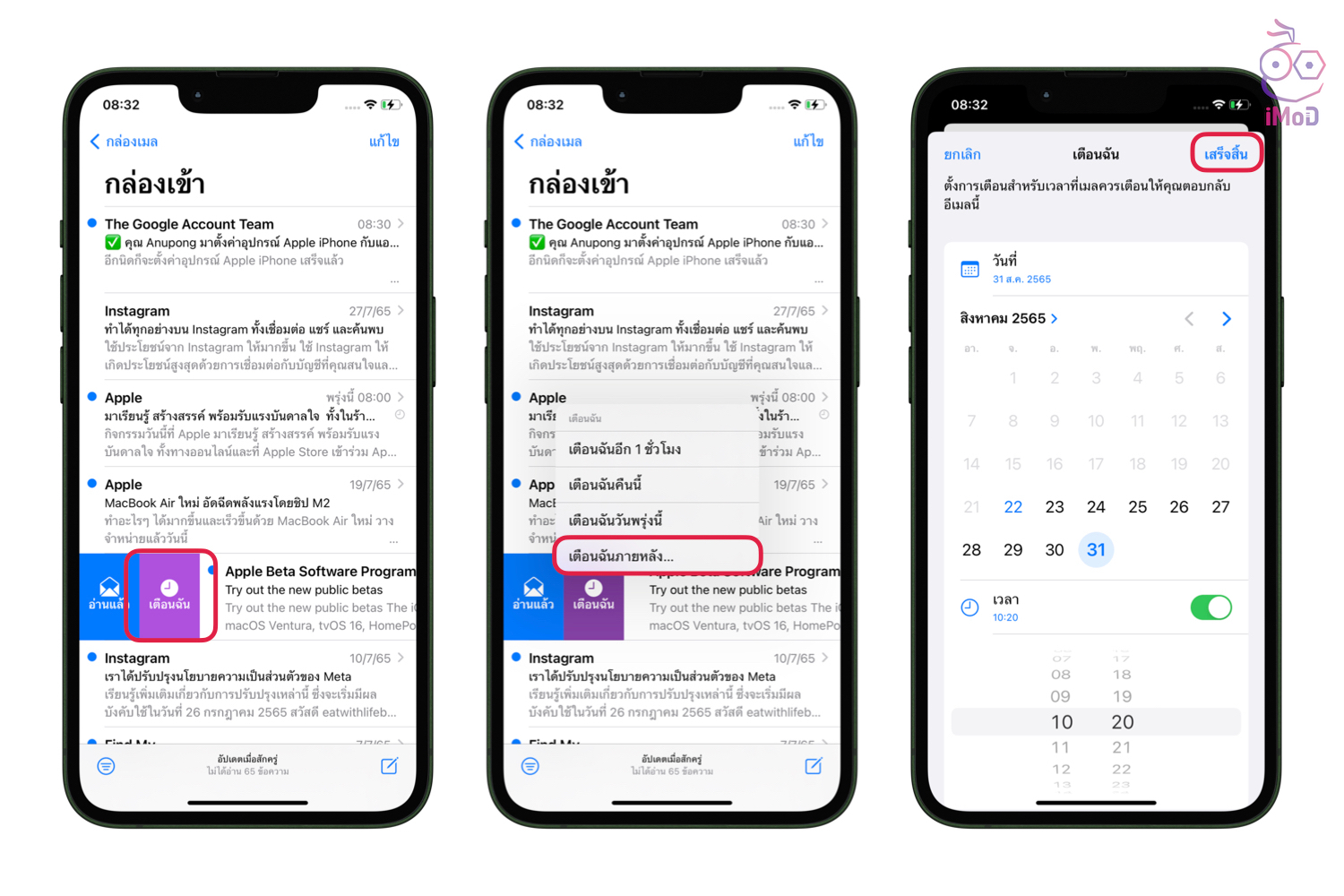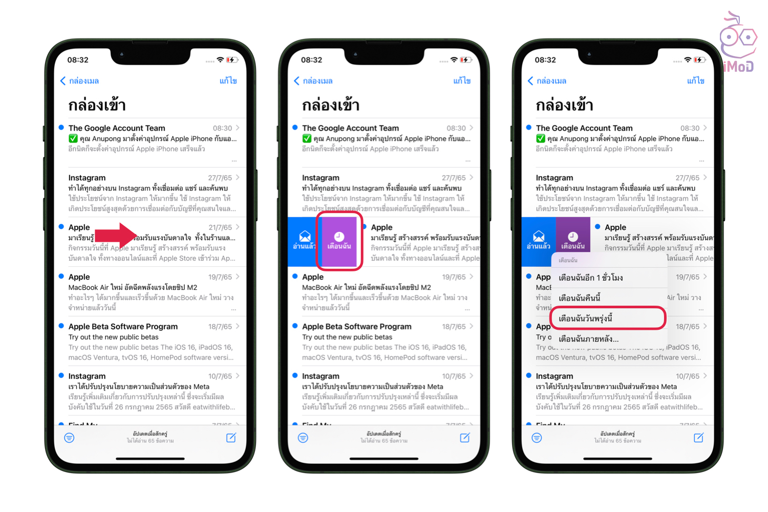 วิธีตั้งค่าเตือนอีเมลภายหลังในแอปเมล (Mail) บน iPhone ใน iOS 16 (Beta)