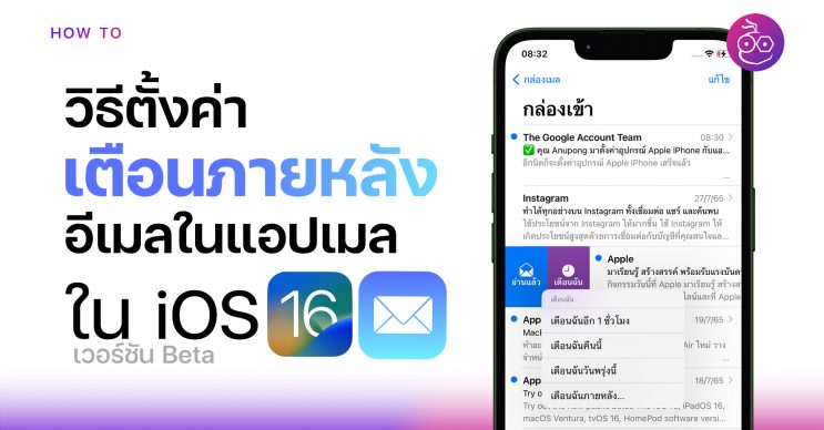 ใน iOS 16 แอปเมล (Mail) ได้รับการปรับปรุงใหม่ที่มีประโยชน์และสะดวกต่อการใช้งานมากขึ้น ในบทความนี้ทีมงานจะมาแนะนำหนึ่งคุณสมบัติใหม่ “เตือนภายหลัง (Remind Later)” ที่ช่วยตั้งค่าการเตือนความจำอีเมลที่เราต้องการดูภายหลังได้