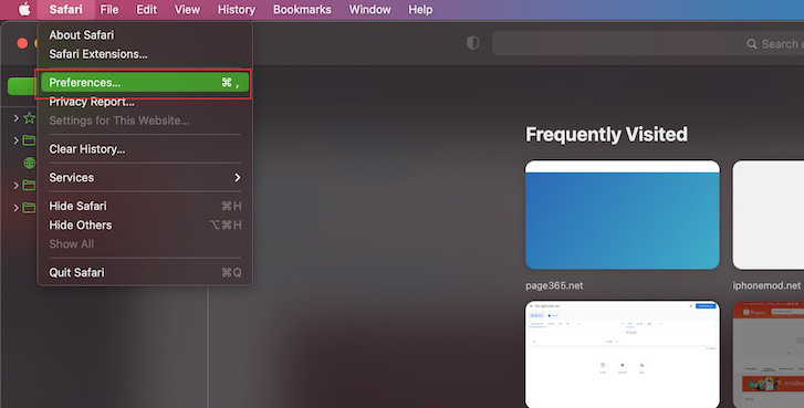 ก่อนอื่นให้เราตั้งค่าการเปิดหน้าต่าง Safari ก่อน โดยเปิดแอป Safari > คลิกเมนู Safari ด้านบน > เลือก Preferences…