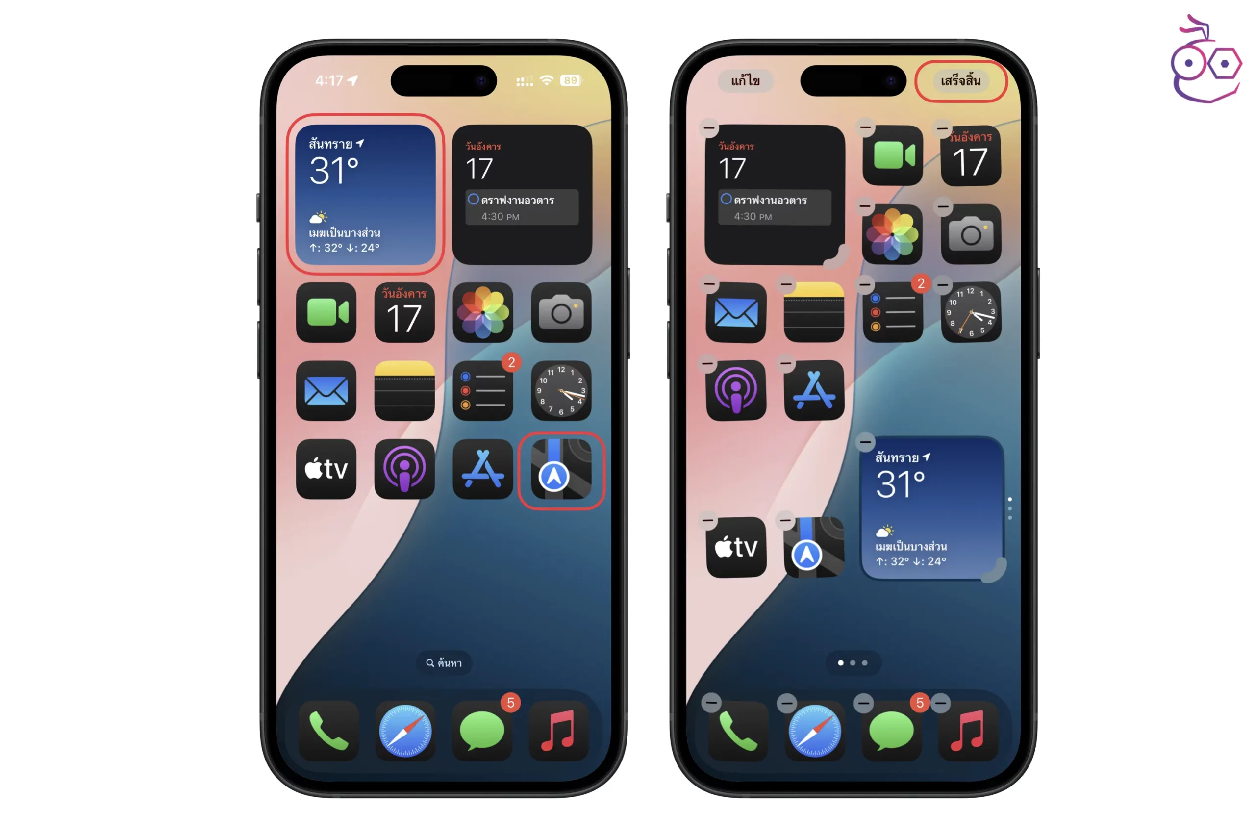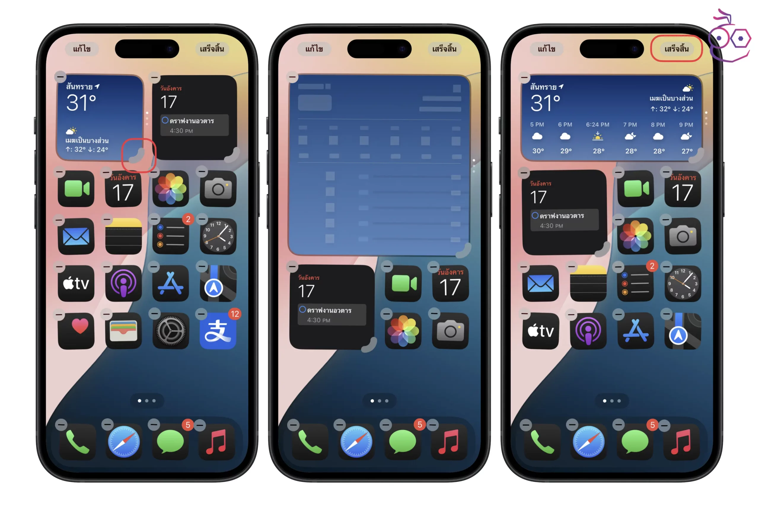 ถ้าหากต้องการเพิ่มวิดเจ็ตใหม่ ก็สามารถแตะปุ่ม แก้ไข ด้านมุมบนซ้าย แล้วเลือก เพิ่มวิดเจ็ต และเลือกวิดเจ็ตที่ต้องการมาแสดงได้เลย